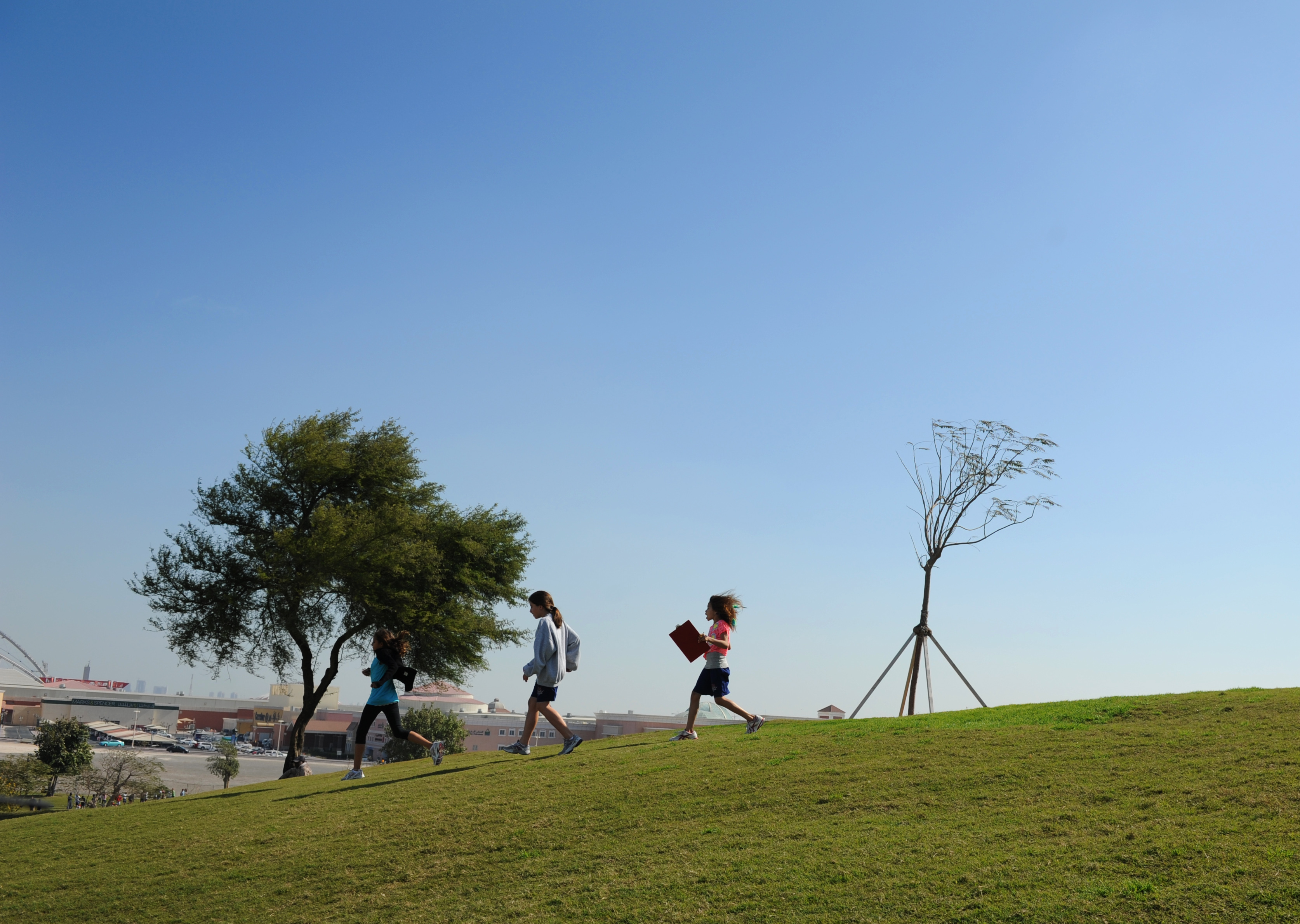SOUTHWEST ASIA – Fifth graders use a compass to find landmarks during their Explorers Field Day Jan. 26, 2012. Senior Airman Ruben Heredia, native of San Antonio, taught the children how to use a compass and find course bearings. (U.S. Air Force photo/Staff Sgt. Nathanael Callon)