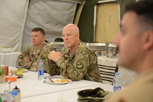 Gen. John W. "Jay" Raymond, commander of Air Force Space Command, visited the 332nd Air Expeditionary Wing on April 23, 2018, at an undisclosed in Southwest Asia. Raymond was visiting the 1st Expeditionary Space Control Squadron, which is a unit that falls under the 332nd Air Expeditionary Wing.