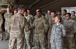 Brig. Gen. Kyle Robinson, 332nd Air Expeditionary Wing commander, visited the 407th Air Expeditionary Group Oct. 19 to the 22.During his visit, Robinson met with star performers and toured several base facilities including vehicle maintenance, dormitories and the learning resource center.