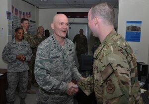 Gen. Carlton Everhart II, Air Mobility Command commander, delivered a message of thanks to Airmen during a visit at Al Udeid Air Base, Qatar March 11 – 14.As the commander of AMC, Everhart is responsible for ensuring the command can provide rapid, global mobility and sustainment for America’s armed