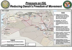 Coalition-enabled anti-ISIL ground operations have continued to reduce ISIL’s freedom of movement in several key areas of Iraq and Syria.“Increased pressure from simultaneous Coalition operations, from the New Syrian Forces and Syrian Democratic Forces in Syria, to the Peshmerga forces in Northern