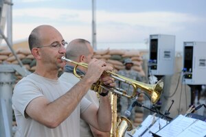There was something different in the air this week, and no it was not the usual dust.The Air Force Central Command Band, New Directions, filled the air with their music as they focused on bringing a little feeling of 'home' to the troops. The Air National Guard band from Milford, Mass., is composed