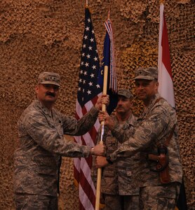 The 447th Air Expeditionary Group was realigned from the 332nd Air Expeditionary Wing to the 321st Air Expeditionary Wing during the transfer of authority ceremony held here April 24, 2010. Maj. Gen. Joseph Reynes Jr., director, Air Component Coordination Element U.S. Forces- Iraq, was the presiding