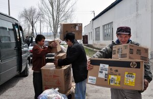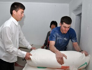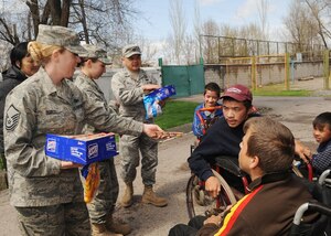 Airmen brought smiles to the faces of dozens of children during a visit to the Belovodsky Orphanage April 13, 2010, in Belovodsky Village, Kyrgyzstan.The visit to the Manas Area Benefit Outreach Society-sponsored orphanage, organized by Lt. Col. Neal Linch, the Transit Center's humanitarian