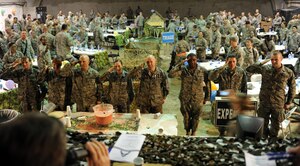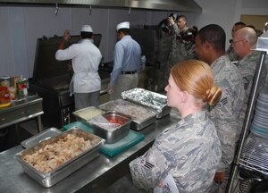 The fragrant smells of shrimp curry, Biriyani rice, chicken Tikka and Aloo Gobi, drifted from the Falcon Café kitchen here April 6, 2010 as staff members taught some of their patrons how to make their favorite Indian dishes. The class, a first for the staff, gave members of the 387th Air