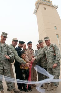 A ribbon-cutting ceremony was held here March 27, 2010 to commemorate the opening of a new air traffic control tower, runway lighting system, instrument landing system and renovated runways and aprons.The ceremony was attended by Iraqi and American dignitaries, followed by an airfield tour and