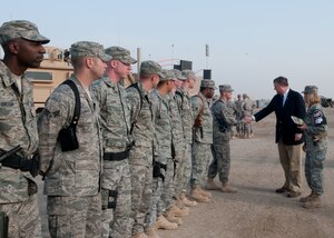 Airmen, Soldiers and Marines on Victory Base Complex demonstrated how to be good neighbors during the Rising Six's Good Neighbor Program on Area Four Jan. 29, 2010.The program, which began in March of 2008, collects donated items such as cloths, toys, and toiletries and distributes them to the Iraqi
