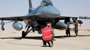 Airmen from the 77th Fighter Generation Squadron completed an Integrated Combat Turnaround training exercise Jan. 28, 2021, at Prince Sultan Air Base, Kingdom of Saudi Arabia. Performing an ICT allows an aircraft to be rapidly refueled and rearmed in order to quickly and efficiently embark on