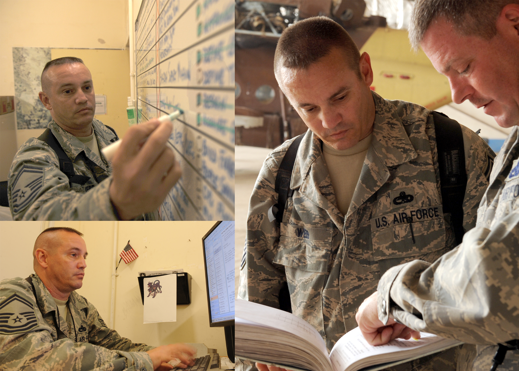 Senior Master Sgt. Ken Webb holds three key roles for Airmen stationed at Camp Taji, Iraq, as the superintendent for the 721st Air Expeditionary Advisory Squadron superintendent as well as the maintenance superintendent and additional-duty first sergeant. The Texas City, Texas, native is deployed from Hurlburt Field, Fla., and likens himself to Cerberus, the three-headed dog from Greek Mythology. At Camp Taji, roughly 50 Airmen are assisting the Iraqi air force become more self-reliant as the Iraqi military becomes increasingly responsible for its national security. (Air Force photos/ Staff Sgt. J.G. Buzanowski)
