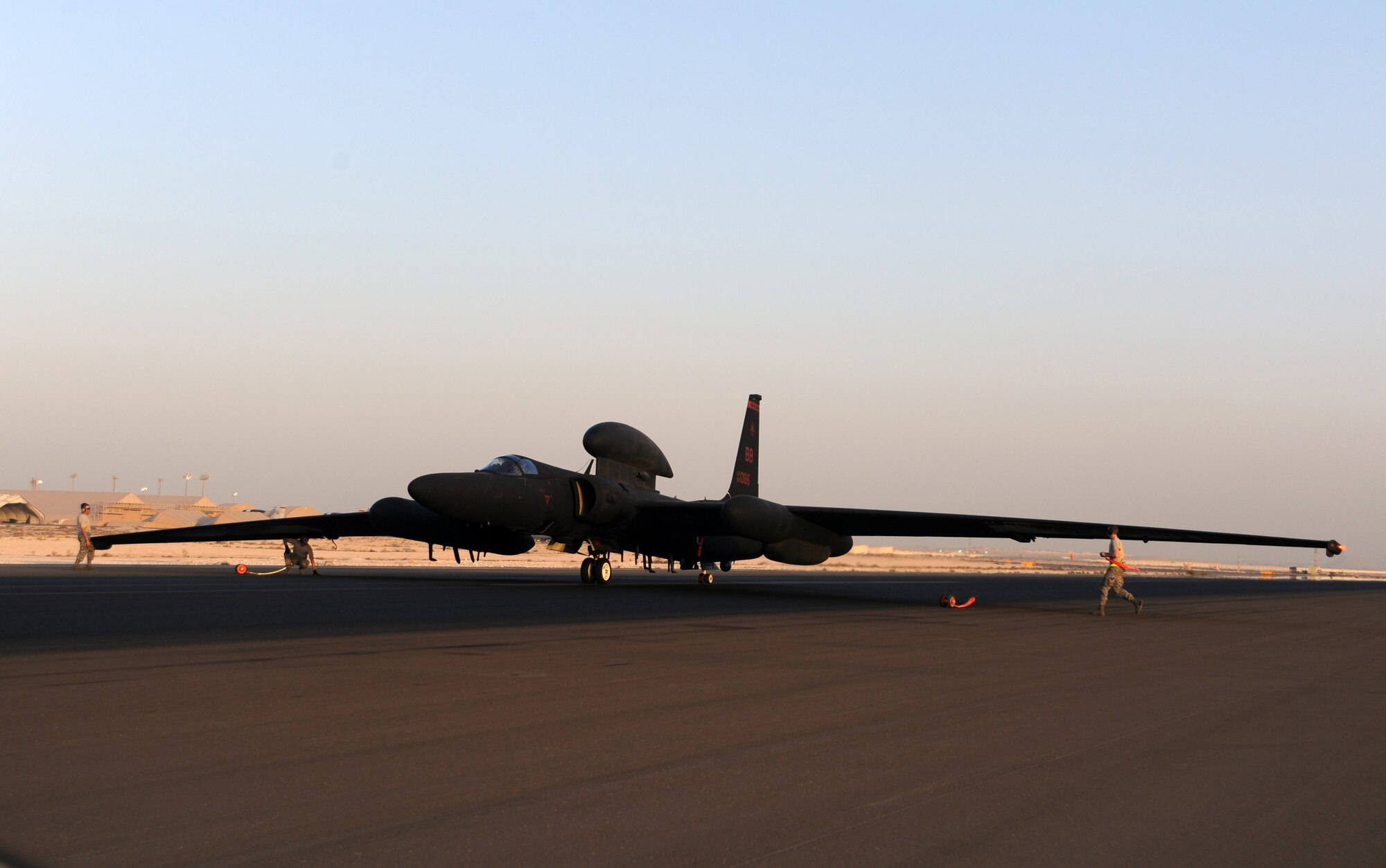 SOUTHWEST ASIA - Lt. Col. Alberto Cruz, 380th Expeditionary Operations Group deputy commander, congratulates Maj. Mark after he reached 2,000 flight hours in the U-2 Feb. 10, 2012. Mark, a Mobile, Ala., native, is deployed from Beale Air Force Base, Calif., to the 99th Expeditionary Reconnaissance Squadron. (U.S. Air Force photo/1st Lt. Victoria Porto)