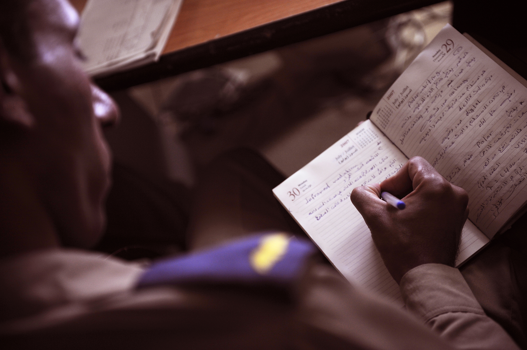 (Right) Staff Sgt. Dan Alexander, a weather advisor deployed from the Air Force Weather Initial Skills Course at Keesler Air Force Base, Miss., reviews weather data with an Iraqi air force weather forecaster at the IqAF's weather center June 14. U.S. Air Force weather advisors have been training the initial cadre of Iraqi air force weather forecasters over the past three years. The training entered a new chapter of autonomy last month when IqAF’s cadre began teaching 18 new cadets at the weather center in Baghdad.