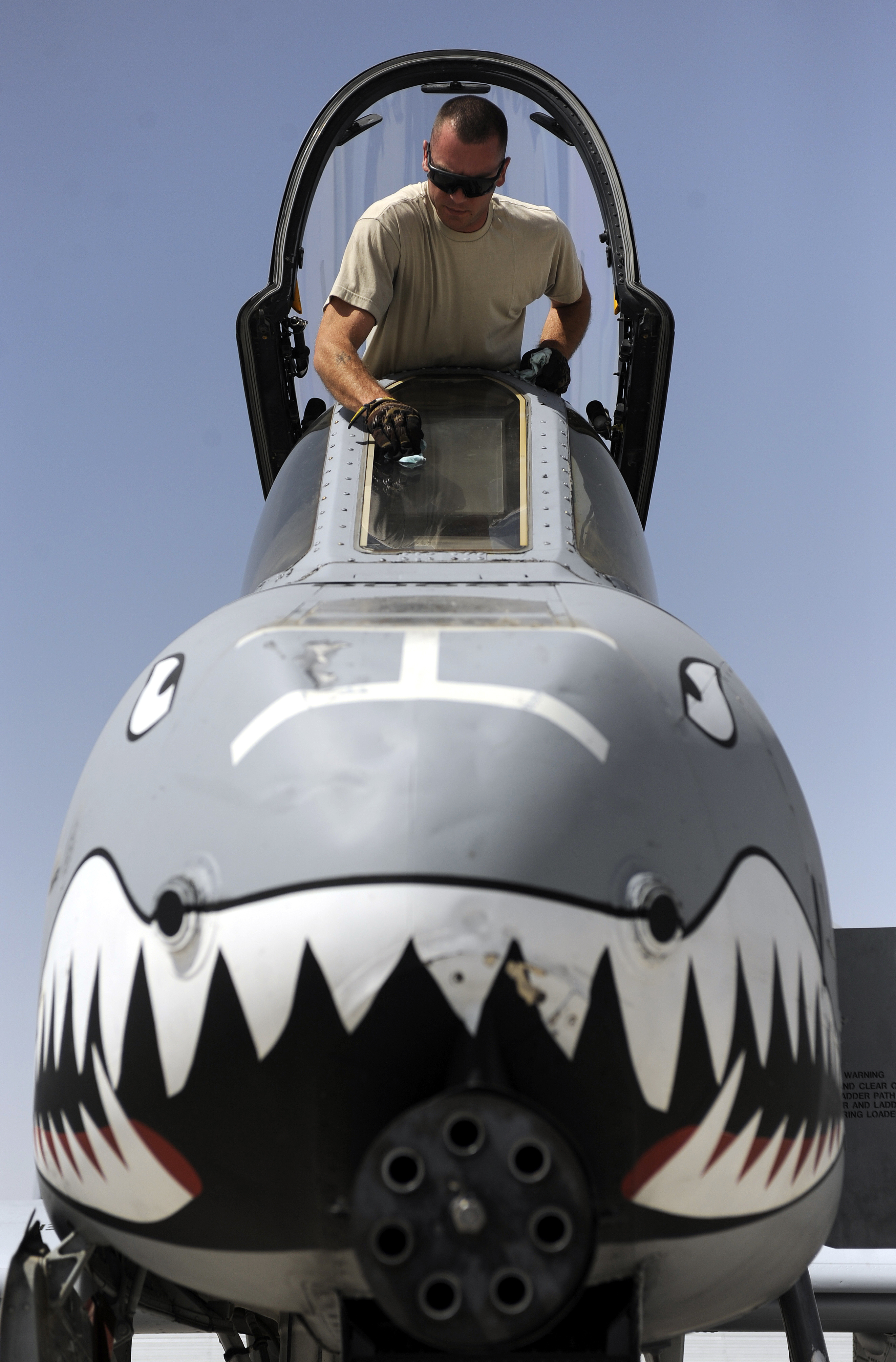 Airman 1st Class Levi Adams conducts preflight load inspections on an A-10C Thunderbolt March 24, 2011, at Kandahar Air Field, Afghanistan. Airman Adams is an A-10 weapons load crew member stationed at Moody Air Force Base, Ga., but currently assigned to the 74th Expeditionary Fighter Squadron. (U.S. Air Force photo/Senior Airman Willard E. Grande II)