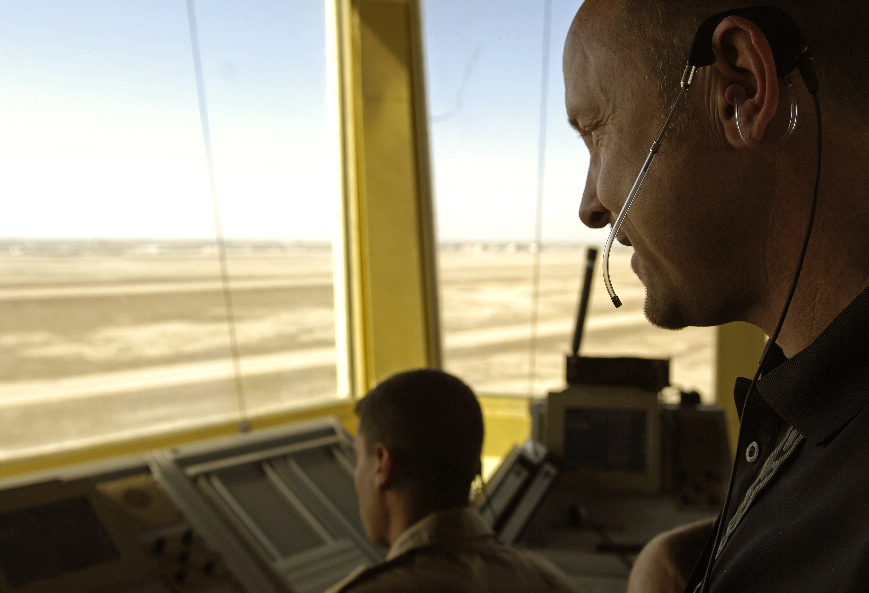 ALI AIR BASE, Iraq -- Maryl Meise, a U.S. contractor for the Iraq Training and Advisory Mission–Air, teaches English to Iraqi air force air traffic control students learning "Ab Initio," or ATC fundamentals, Feb. 3. The IqAF currently has 55 officers in ITAM–Air's ATC training pipeline at Kirkuk, Taji and Ali airfields. Of those, 15 have been certified to work inside control towers, and six are licensed by the Iraqi Civil Aviation Authority - the equivalent of the U.S. Federal Aviation Administration. (U.S. Air Force photo by Tech. Sgt. Jason Lake)