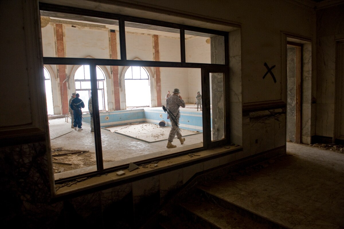 A lone tour guide stands in a ball room waiting for tour patrons to catch up the main tour group at Victory Over America Palace, Baghdad, Jan. 29. The Sather Air Base Chapel runs tours of historic sites on a regular basis, but time is running out as U.S. forces return portions of Victory Base Complex back to Iraqi military forces. (U.S. Air Force photo by Staff Sgt. Levi Riendeau)