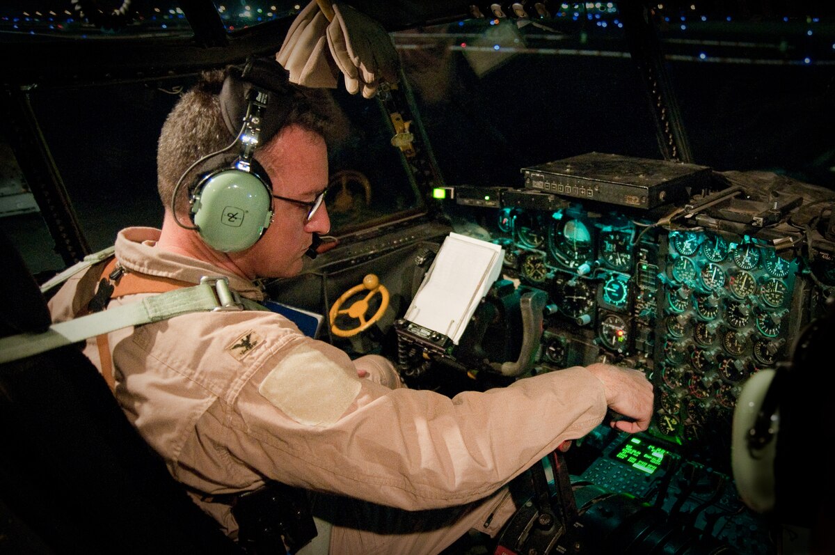 Col. Patrick X. Mordente, commander of the 386th Air Expeditionary Wing, runs through a pre-flight checklist at an undisclosed air base here Aug. 31, 2010, as he prepares to pilot the wing's last C-130 mission into Iraq in support of Operation Iraqi Freedom. In the past three months alone, the 386th AEW has airlifted more than 74,000 passengers and 1,700 tons of cargo into and out of Iraq aboard C-130s in support of OIF. An additional 82,000 passengers and 34,000 tons of cargo have been carried on C-17s based here. Just a few hours after completing this sortie, Colonel Mordente piloted the wing's first mission into Iraq in support of Operation New Dawn. (U.S. Air Force photo by Maj. Dale Greer)