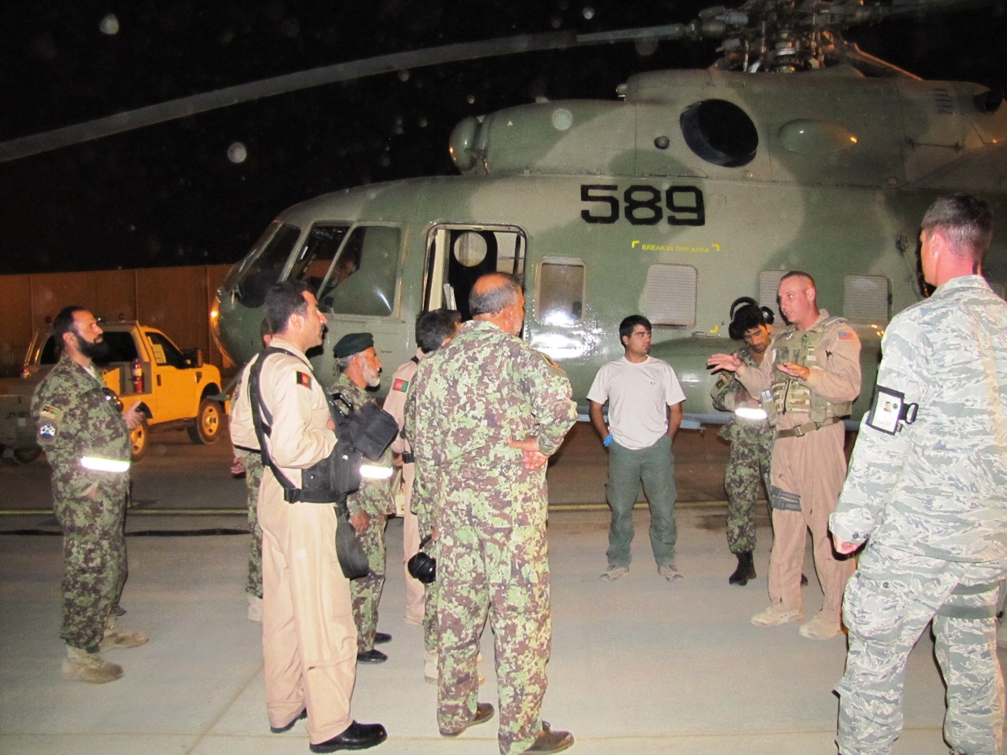 Afghan Air Force aircrew and their 438th AEW advisors pose for a photo after their night flight with the aid of night vision goggles for the first time in Afghanistan in the Mi-17 Transport helicopter on Aug. 22, 2010. (U.S. Air Force photo by Capt. Rob Leese/RELEASED).