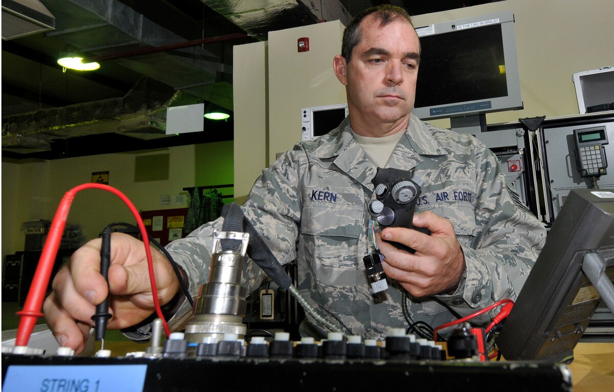 Tech. Sgt. Kary Kern, 332nd Expeditionary Maintenance Squadron F-16 Avionics Intermediate Shop team leader, troubleshoots and adjusts switches on an F-16 Fighting Falcon throttle grip Aug. 6, 2010, Joint Base Balad, Iraq. Sergeant Kern, a native of Walhalla, S.C., is deployed from McEntire Air National Guard, S.C. (U.S. Air Force photo/Staff Sgt. Phillip Butterfield)
