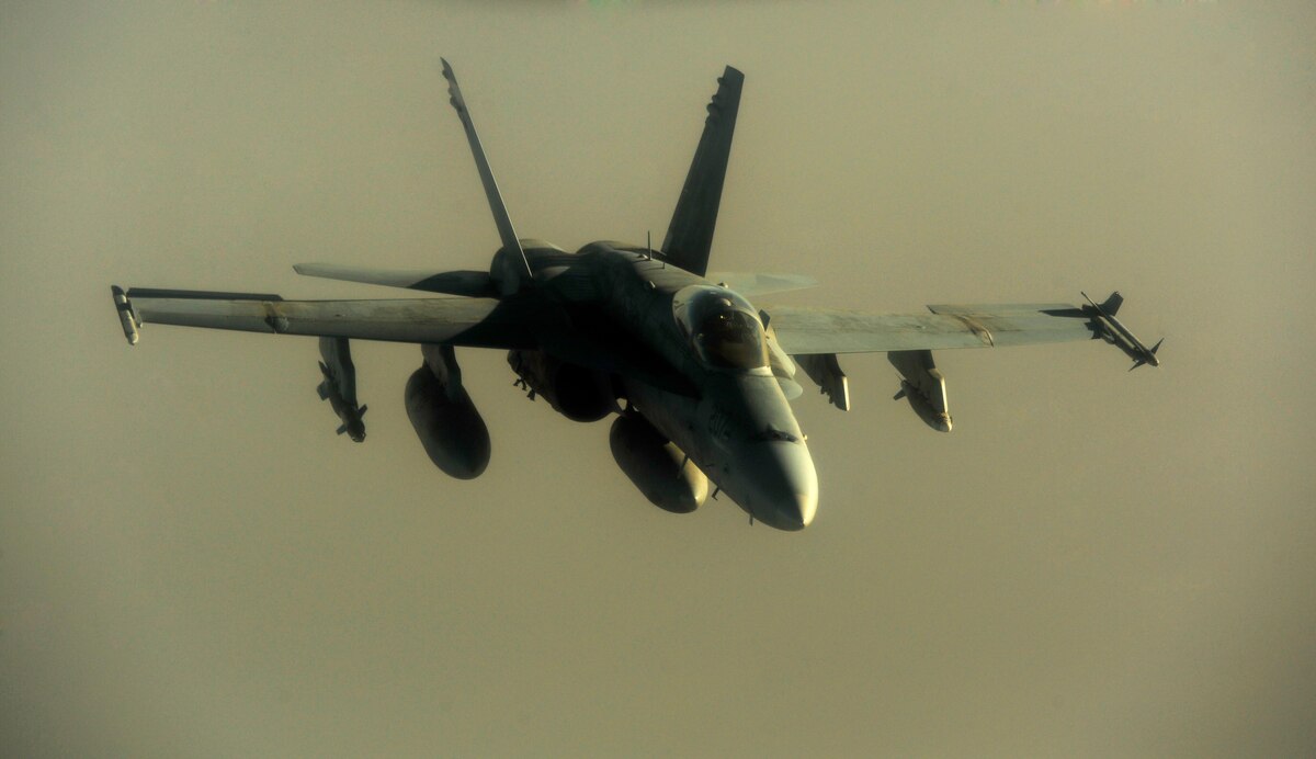 U.S. Air Force Captains Adam Kornitzer, left, and Nicholas Williams, KC-135 Stratotanker pilots assigned to the 340th Expeditionary Air Refueling Squadron, perform checks and stay on course during a refueling mission of a U.S. Marine Corps F-18 Hornet on July 8, 2010. Coalition tankers have flown greater than 6,000 sorties, offloaded greater than 400 million pounds of fuel and refueled nearly 33,000 aircraft as of June 30, 2010. (U.S. Air Force photo by Staff Sgt. Andy M. Kin / Released)