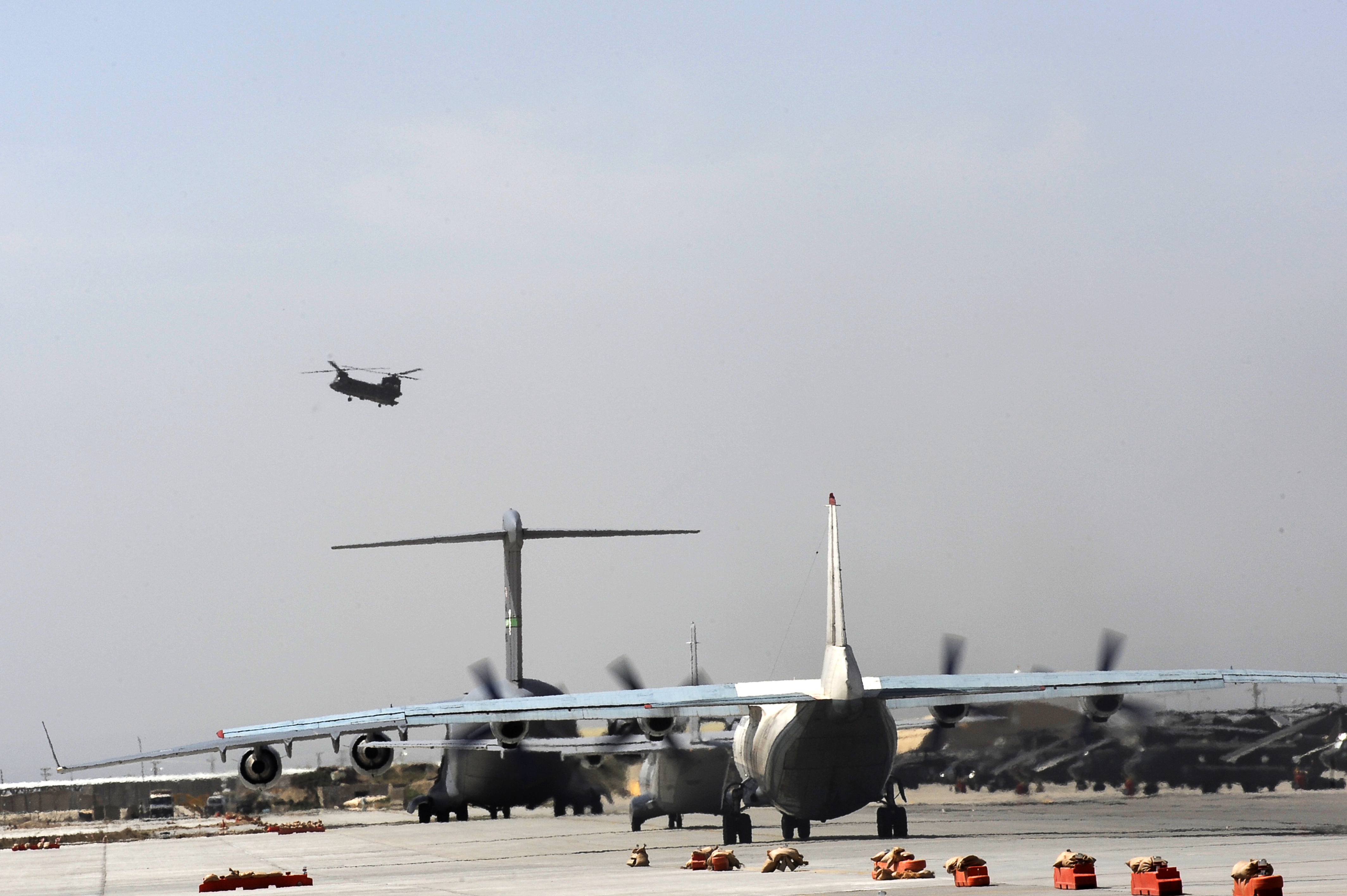 Aircraft wait to take off at Bagram Airfield, Afghanistan, April 6, 2010. (U.S. Air Force photo by/ Tech. Sgt. Jeromy K. Cross/released)