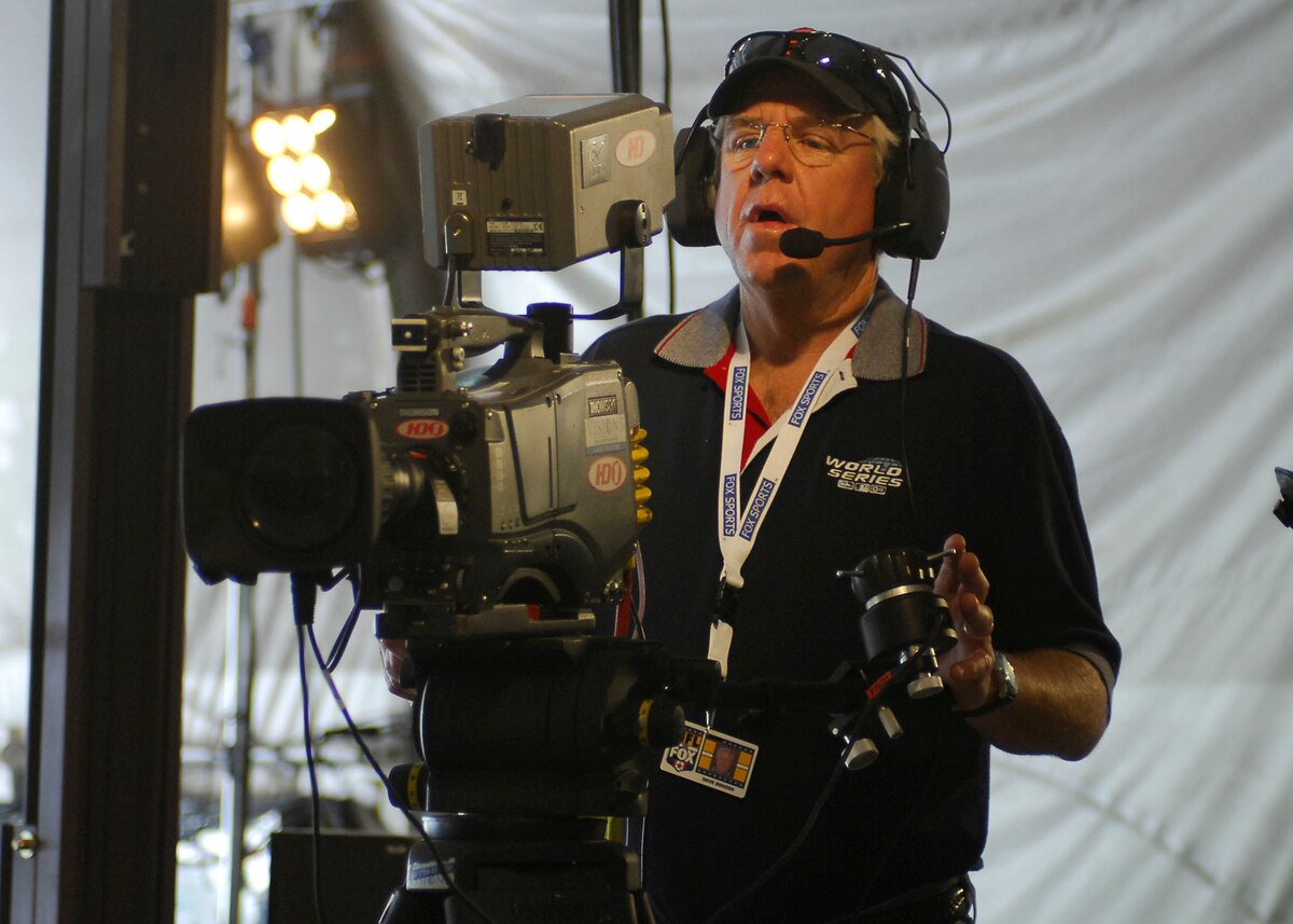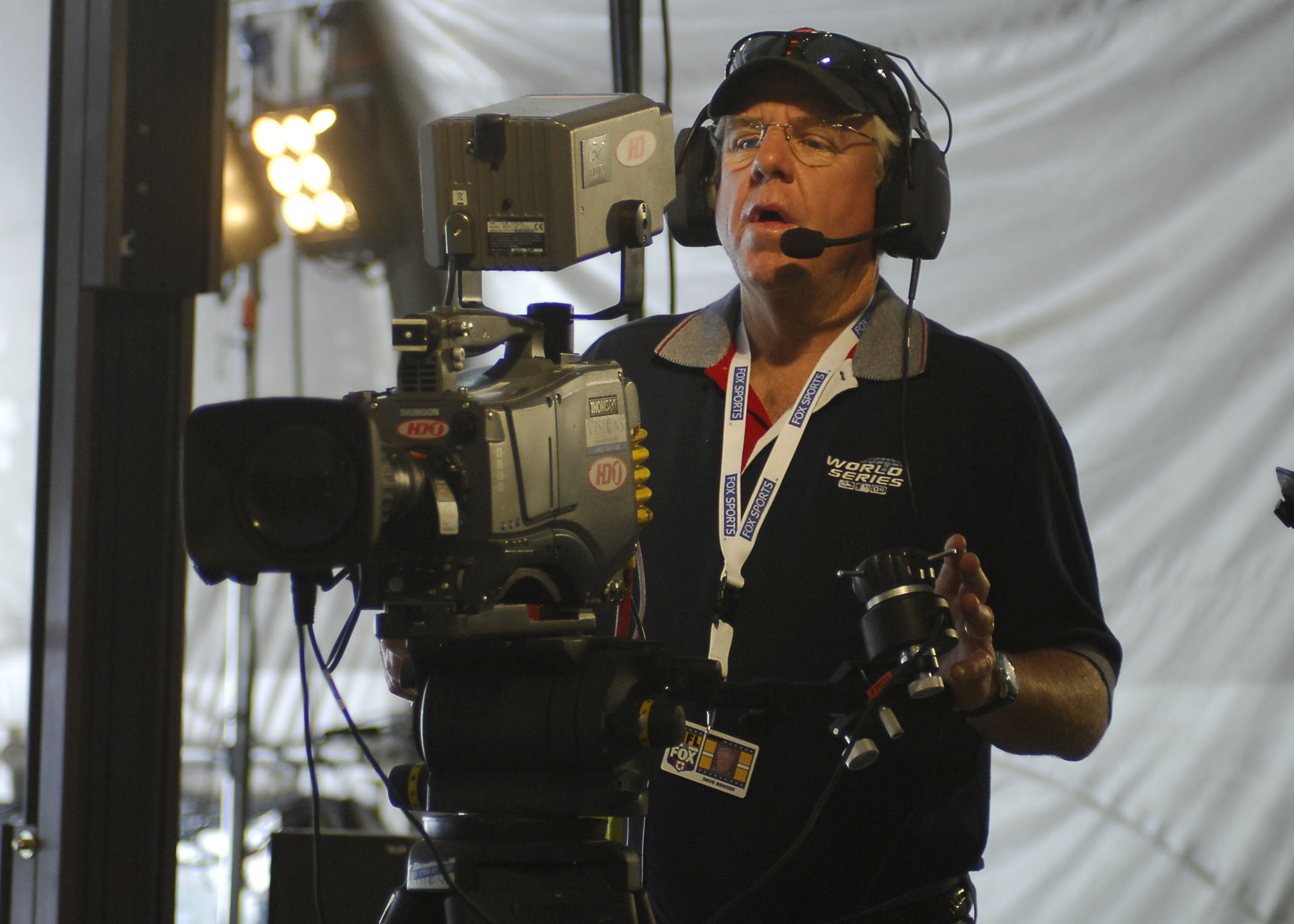 BAGRAM AIR FIELD, Afghanistan -- David Hill (left), chairman of Fox Sports, and Chuck Noble (right), lighting designer, discuss the progress of the set Nov. 6, 2009. The Fox Sports members transformed the MWR clamshell into a set for the "Fox NFL Sunday" team. The "Fox NFL Sunday" team is scheduled to broadcast live Nov. 8, 2009 from here. Mr. Hill hails from Los Angeles, and Mr. Noble hails from White Plains, N.Y. (U.S. Air Force photo/Senior Airman Felicia Juenke)