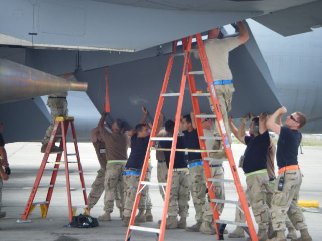MANAS AIR BASE, Kyrgyz Republic -- Staff Sgt. Michael Overman, A KC-135 crew chief deployed here from Fairchild Air Force Base, Wash., refuels one of the 376th Air Expeditionary Wing's tankers, July 23. Maintainers, aircrew and support personnel helped Manas bust through the 1 million pound mark July 17, when its KC-135 fleet offloaded 1.01 million pounds of fuel to an array of aircraft supporting combat operations in Afghanistan. (U.S. Air Force photo / Maj. Damien Pickart)