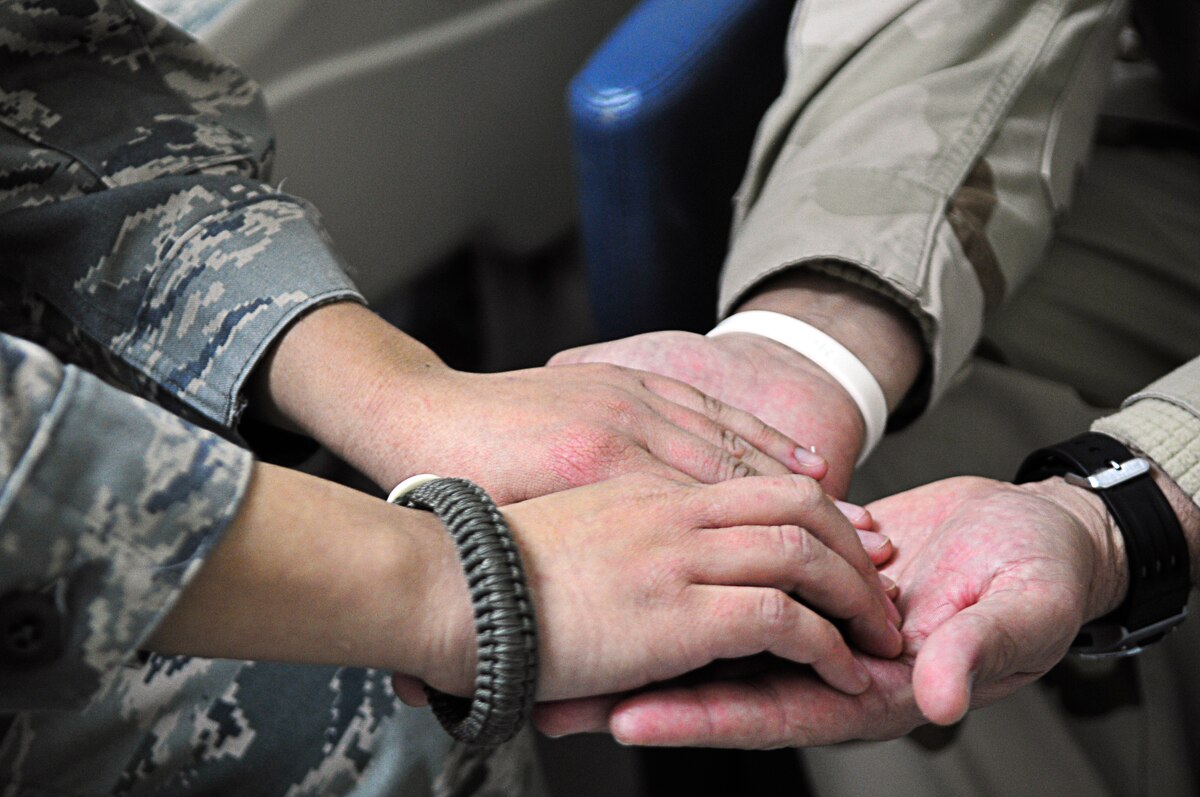 U.S. Air Force 2nd Lt. Andrea Laursen, a registered nurse deployed to the Craig Joint Theater Hospital at Bagram Airfield, Afghanistan, and her father, U.S. Navy Hospital Corpsman 1st Class Kevin Laursen, embrace after reuniting here during a visit, Jan. 4, 2011. The father and daughter servicemembers were able to reunite thanks to a call from President Barrack Obama on Thanksgiving Day in which Seaman Laursen asked for one Christmas wish, to see his daughter. (U.S. Air Force photo by Tech. Sgt. Michael Voss/Released)