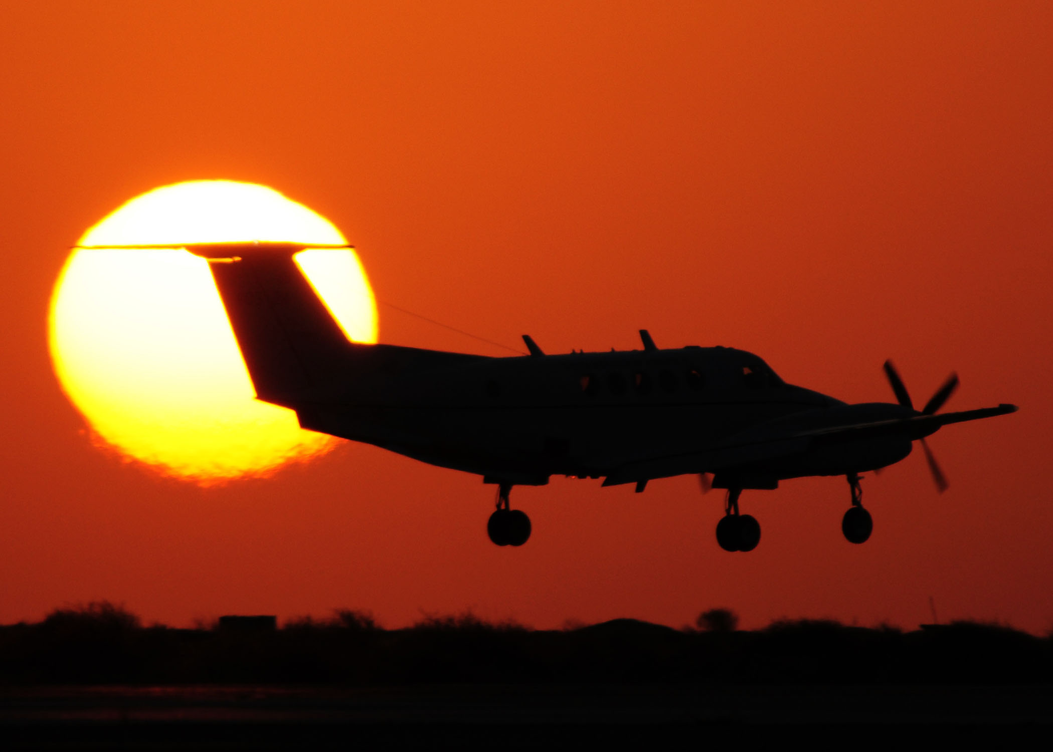 SOUTHWEST ASIA -- A U.S. Army C-12 Huron prepares to land at an air base in Southwest Asia Nov. 18, 2009. (U.S. Air Force photo/Tech. Sgt. Tony Tolley)