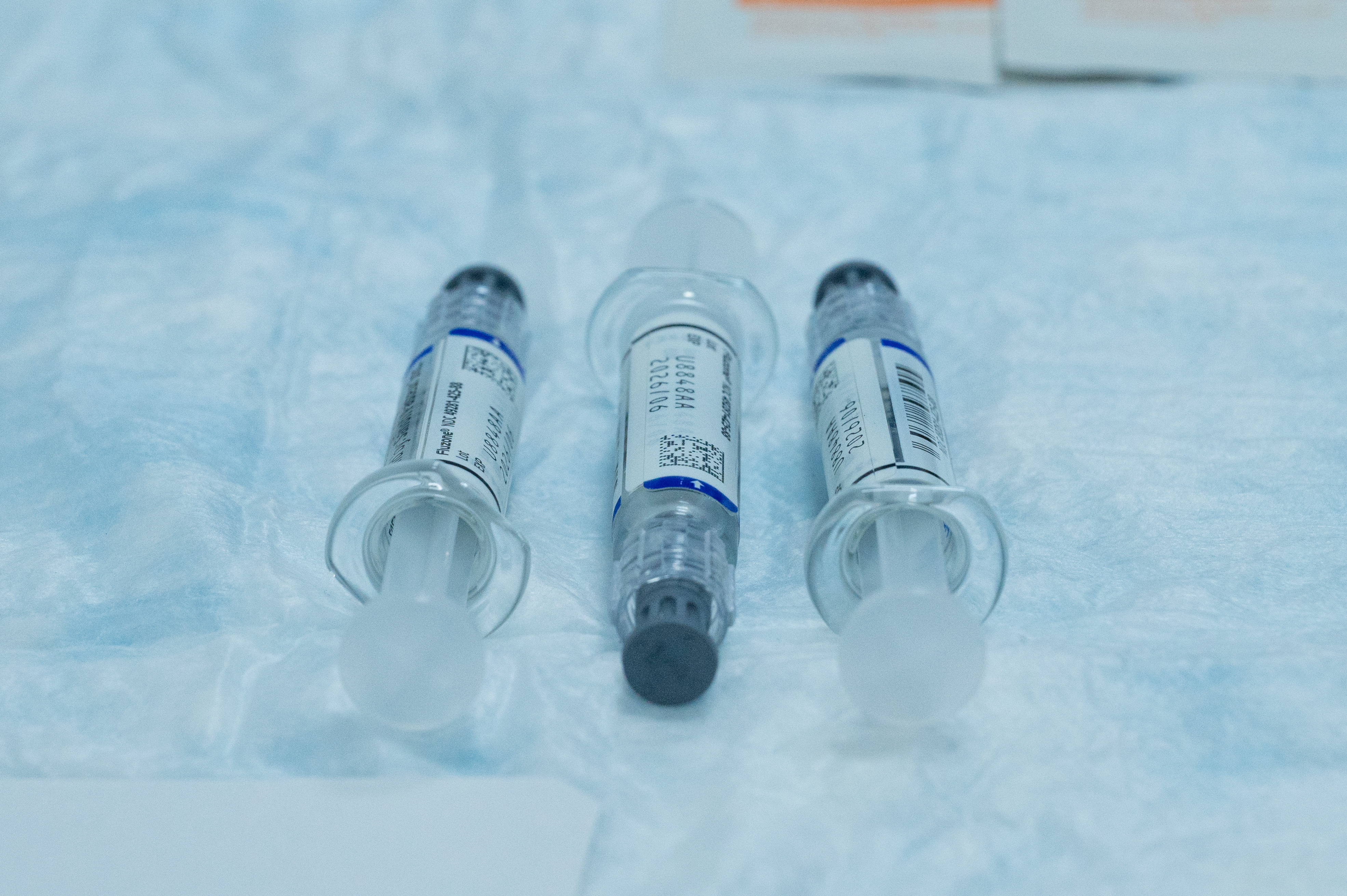 Three influenza vaccines are prepared for administration within the U.S. Central Command area of responsibility, Nov. 12, 2025. The influenza vaccine is an annual requirement for military members to ensure they are mission ready anytime, anywhere. (U.S. Air Force photo by Senior Airman Joseph Garcia)