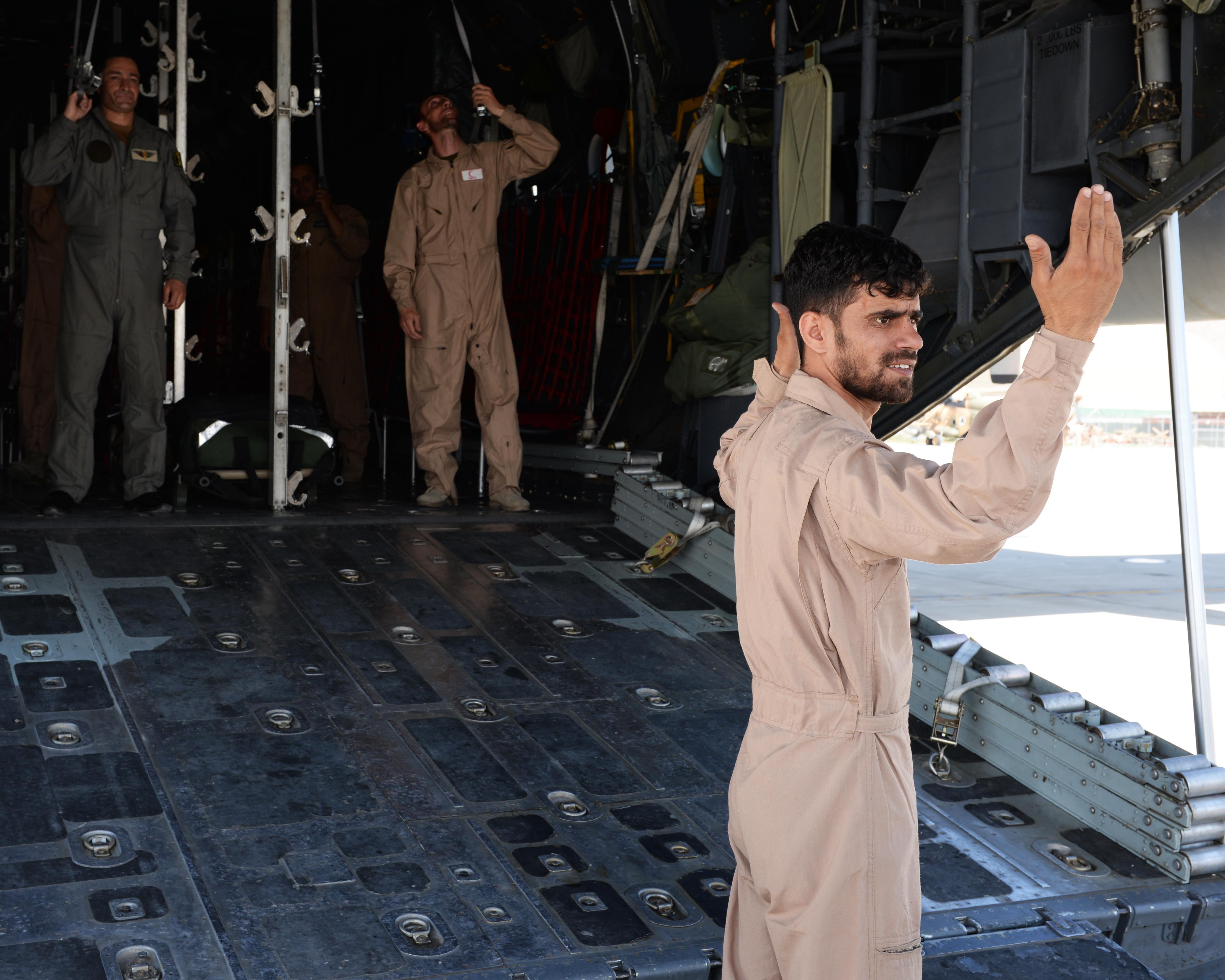 Members of the Afghan National Army medical evacuation team practice hands on MEDEVAC training with Train, Advise, Assist Command-Air advisors in a C-130H Hercules aircraft July 29, 2015, at Hamid Karzai International Airport, Kabul, Afghanistan. The TAAC-Air advisors host weekly training with the Afghan flight medics, with assistance from U.S. Air Force aeromedical evacuation subject matter experts. (U.S. Air Force photo by Senior Airman Cierra Presentado/Released)