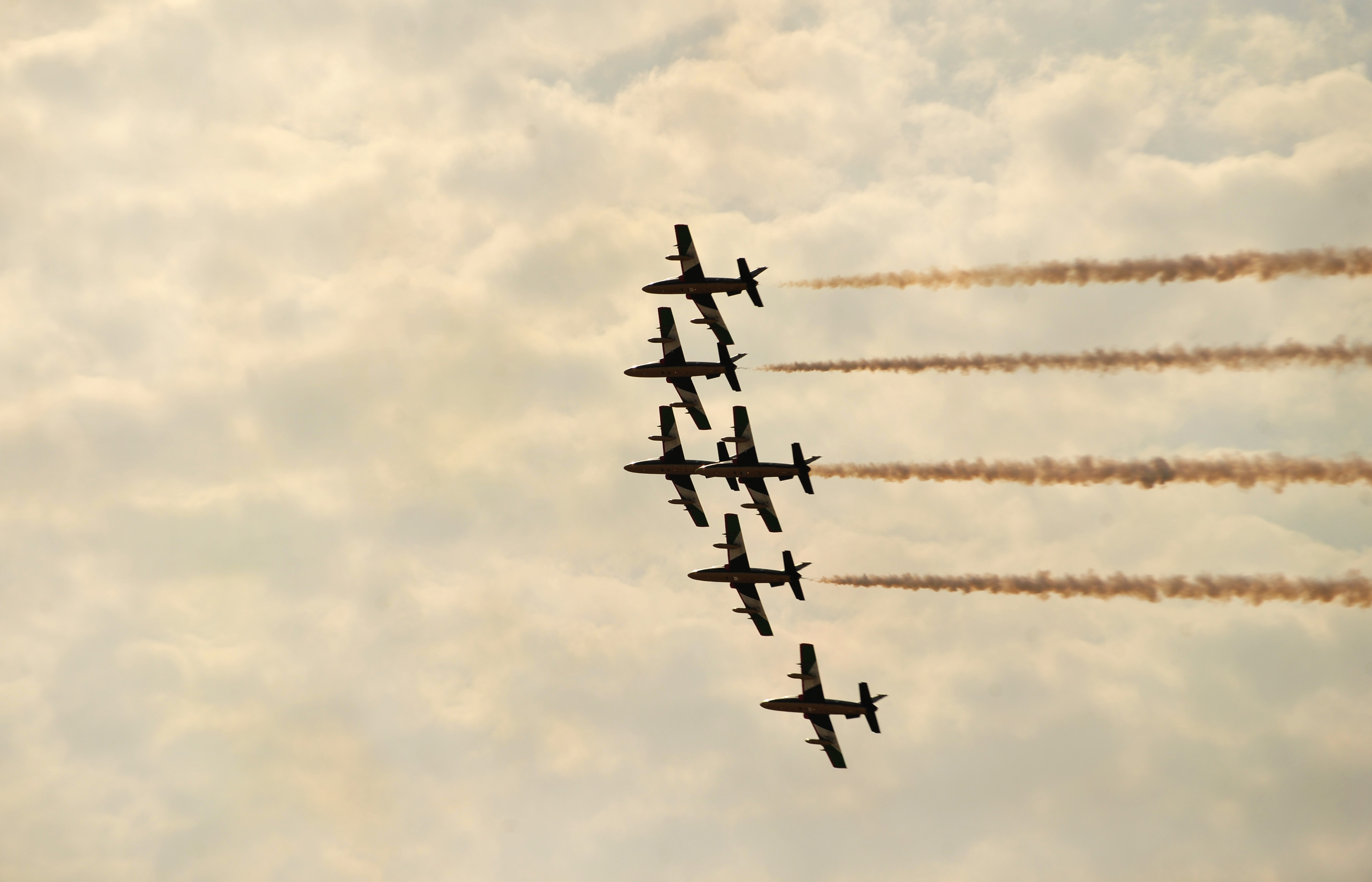 The United Arab Emirates Al Fursan display team performs during the Bahrain International Airshow 2012 at Shakir Air Base, Bahrain Jan. 19, 2012. This event strengthens partnerships in the region and allows the United States and coalition and partner nations to work together to promote security, stability and mutual interests in the region. The U.S. Air Force showcased a variety of military aircraft through static displays, including the C-17 Globemaster III, C-130H Hercules, and F-15E Strike Eagle. Additionally, a large number of aircrew and support personnel from bases in Southwest Asia, Europe, and the United States were available to answer questions about the aircraft technology and capabilities. (U.S. Air Force photo by Staff Sgt. Andy M. Kin)