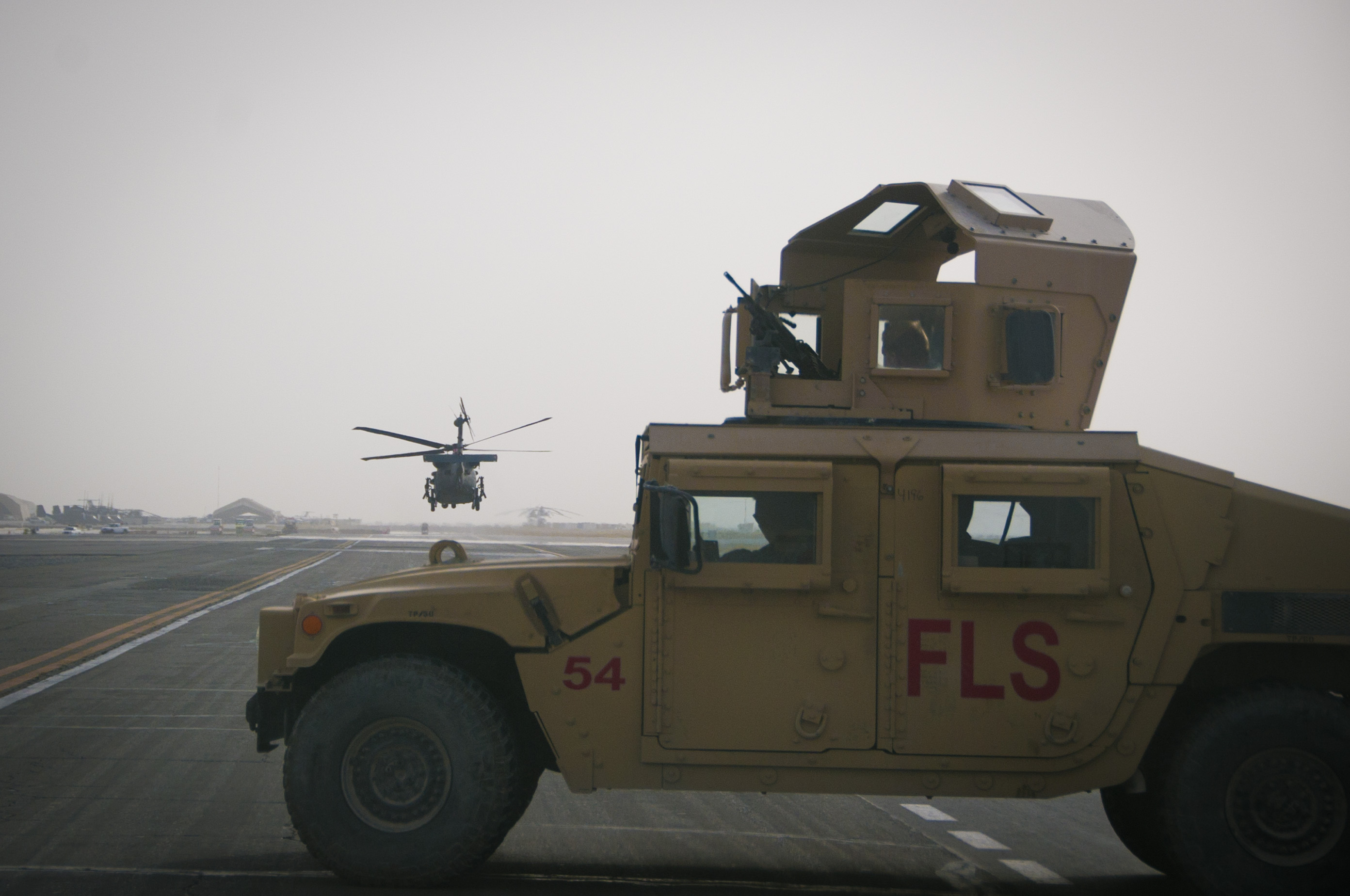 A HH-60 Pave Hawk helicopter lands at Kandahar Airfield, Afghanistan, during a medevac mission, Aug. 25, 2011. The crews flying the Pave Hawks here support coalition and Afghan forces by landing in hostile areas to recover casualties and fly them to medical facilities for treatment. (U.S. Air Force photo by Senior Airman Corey Hook)