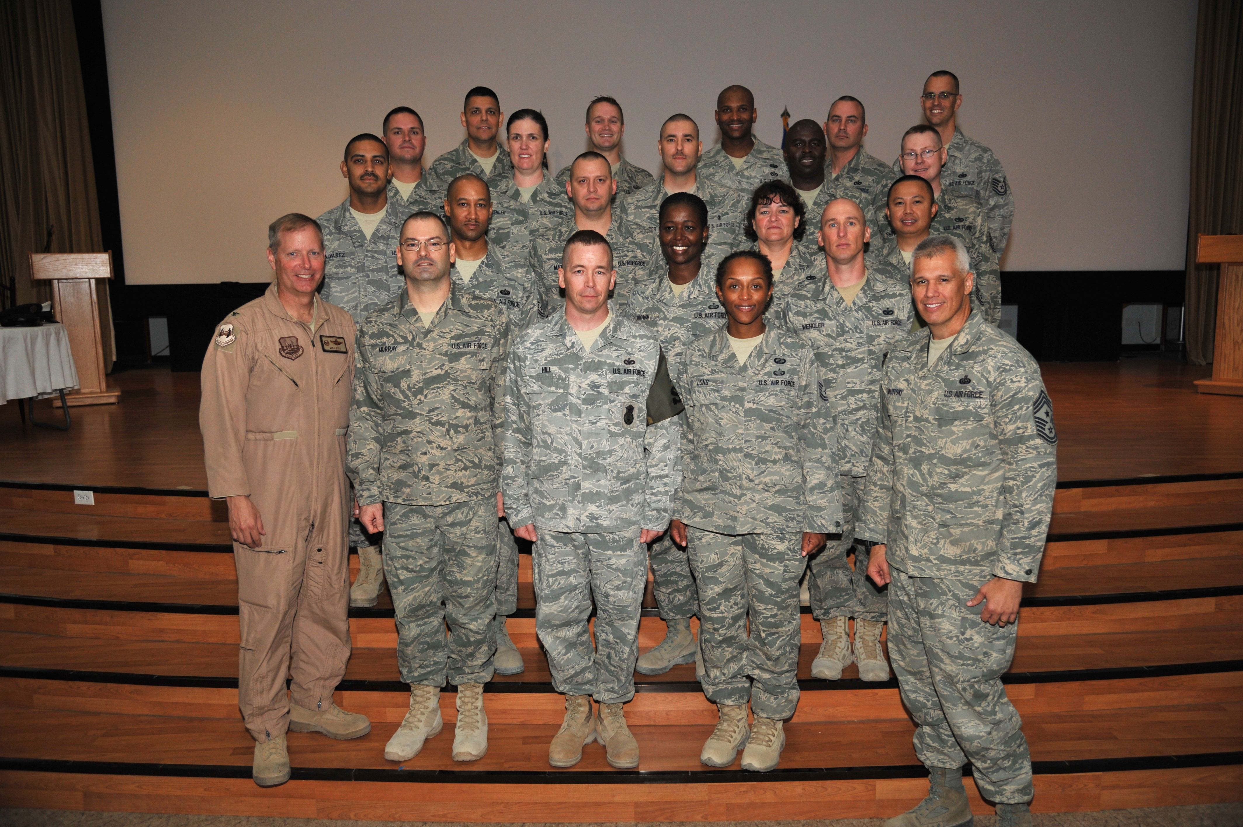 “Rock” Airmen are recognized in an annual Senior Noncommissioned Officer Recognition Ceremony Aug. 16 at an undisclosed location in Southwest Asia. (U.S. Air Force photo by Master Sgt. Carlotta Holley)