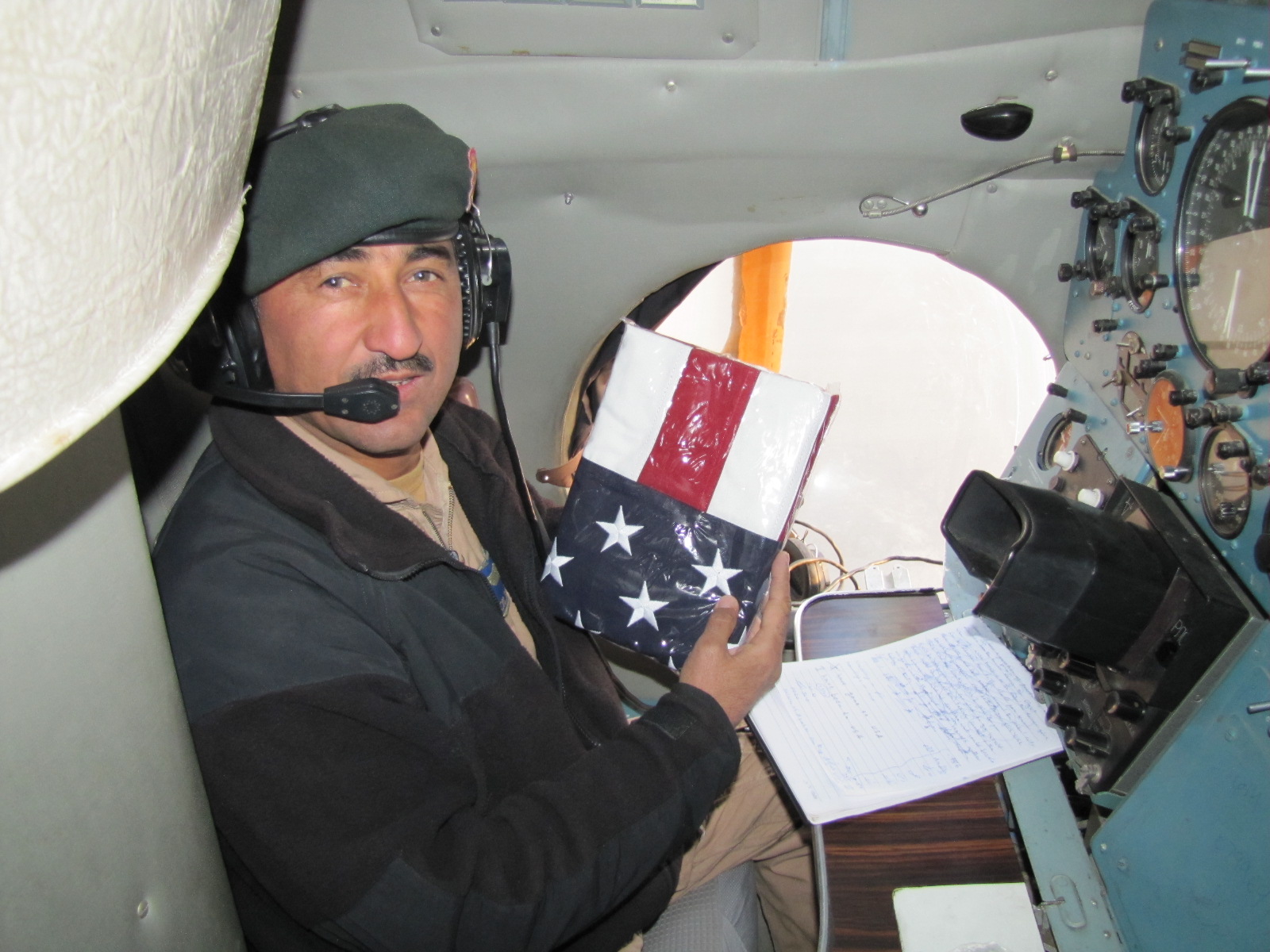 KABUL, Afghanistan - Members of NATO Air Training Command-Afghanistan/538th Air Expeditionary Advisory Squadron and the Afghan Air Force flew American flags over Afghanistan to be presented to families and organizations that support U.S. troops in the AOR.. (U.S. Air Force phot by Capt. Rob Leese/RELEASED).