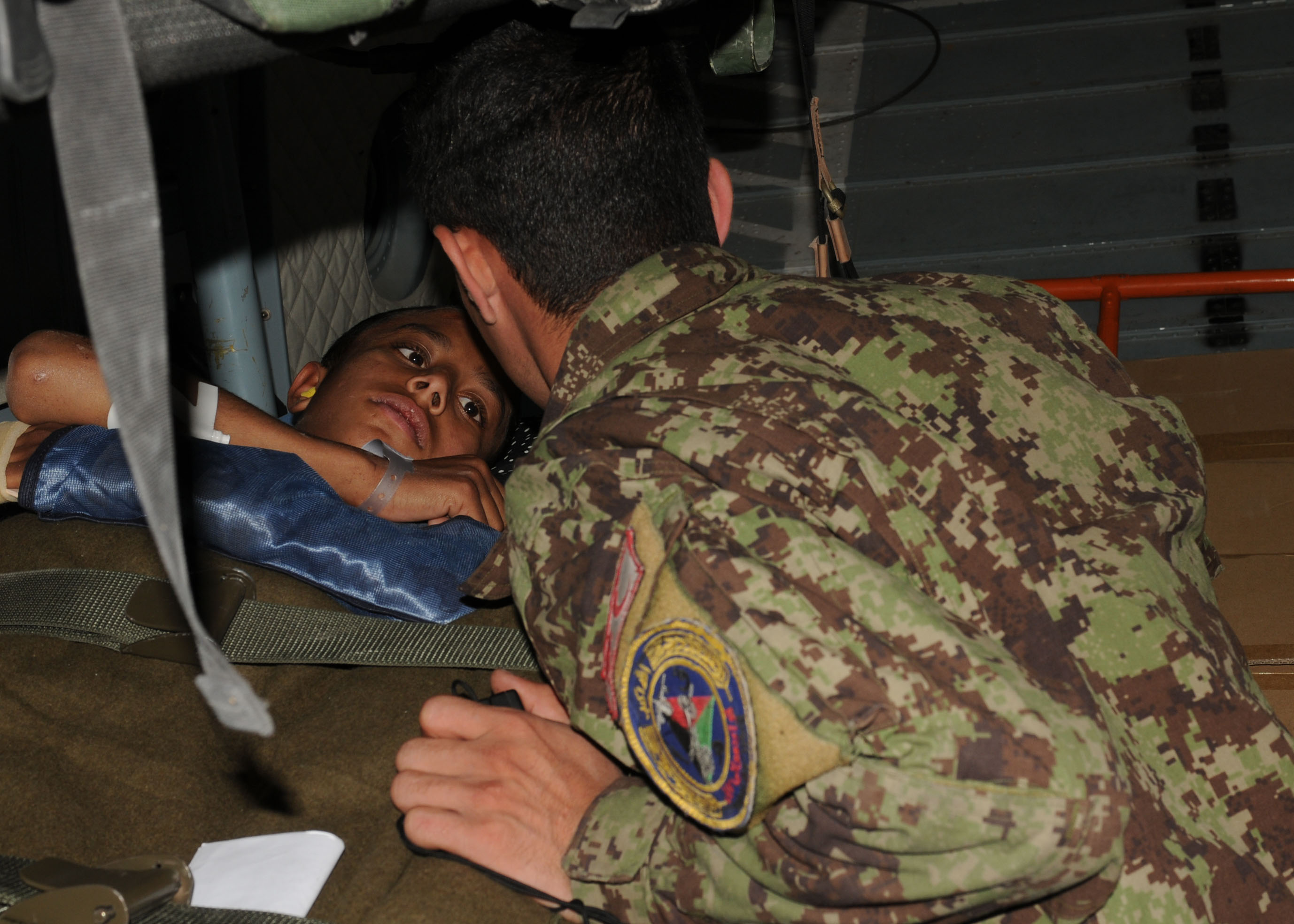 101108-N-6541W-041 KUNAR VALLEY, Afghanistan - A twelve year old boy recovering from a skull fracture were flown to Forward Operating Base Bosticak in Kunar Valley, Afghanistan on Nov. 8th by the Afghan Air Force and NATO Air Training Command - Afghanistan. Lt. Hussain an Afghan Air Force Flight Medic from Kabul Wing cares for the injured child during the flight. (U.S. Navy photo by Mass Communication Specialist 3rd Class Jared Walker/ RELEASED).