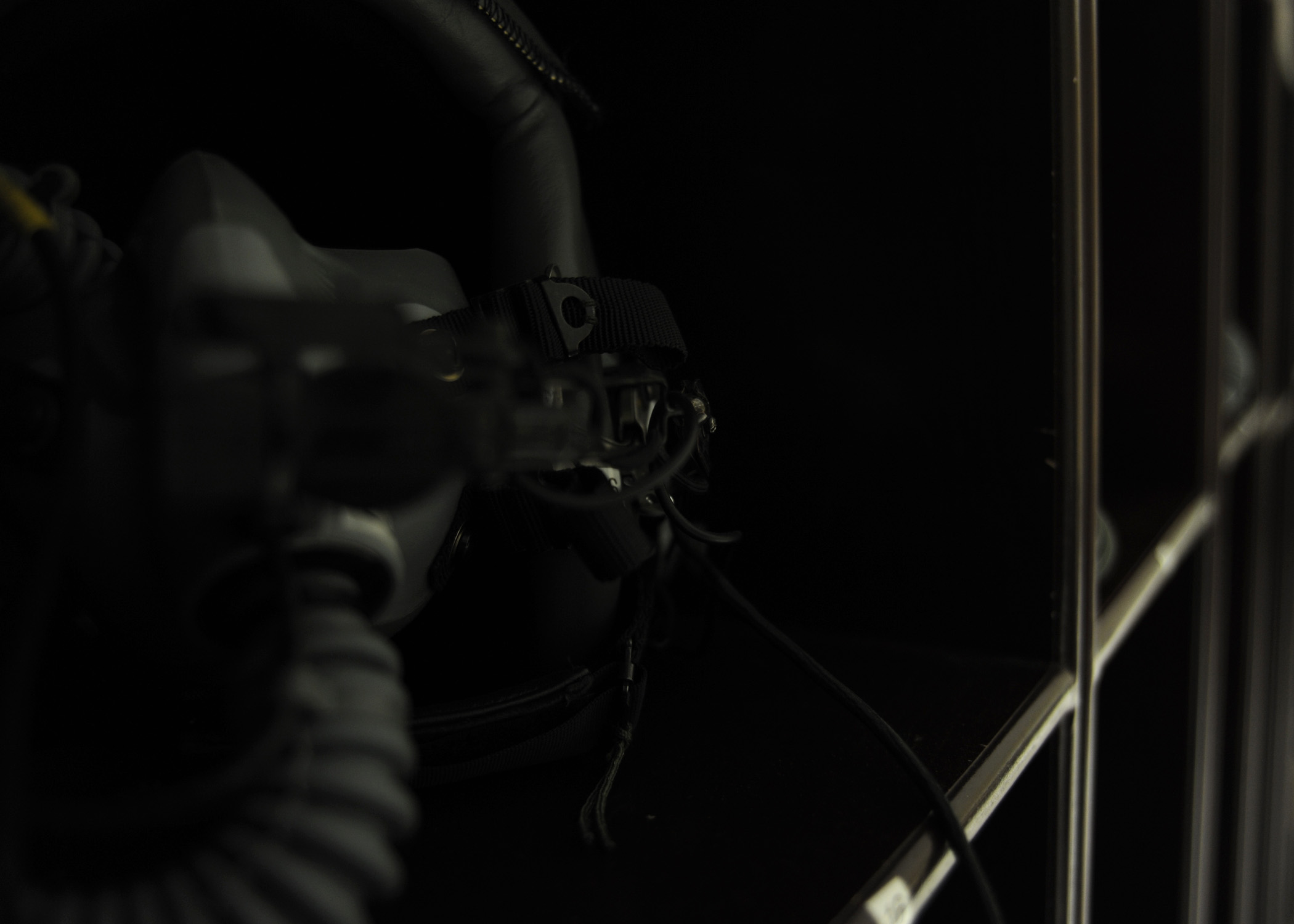 A B-1 bomber pilots helmet and oxygen mask sit in a locker after haveing been inspected by the aircrew flight equipment office at an undisclosed location in Southwest Asia Sept. 7. The helmets and masks are inspected every 30 days to ensure they are safe for use. (U.S. Air Force photo/Senior Airman Katie Gieratz)