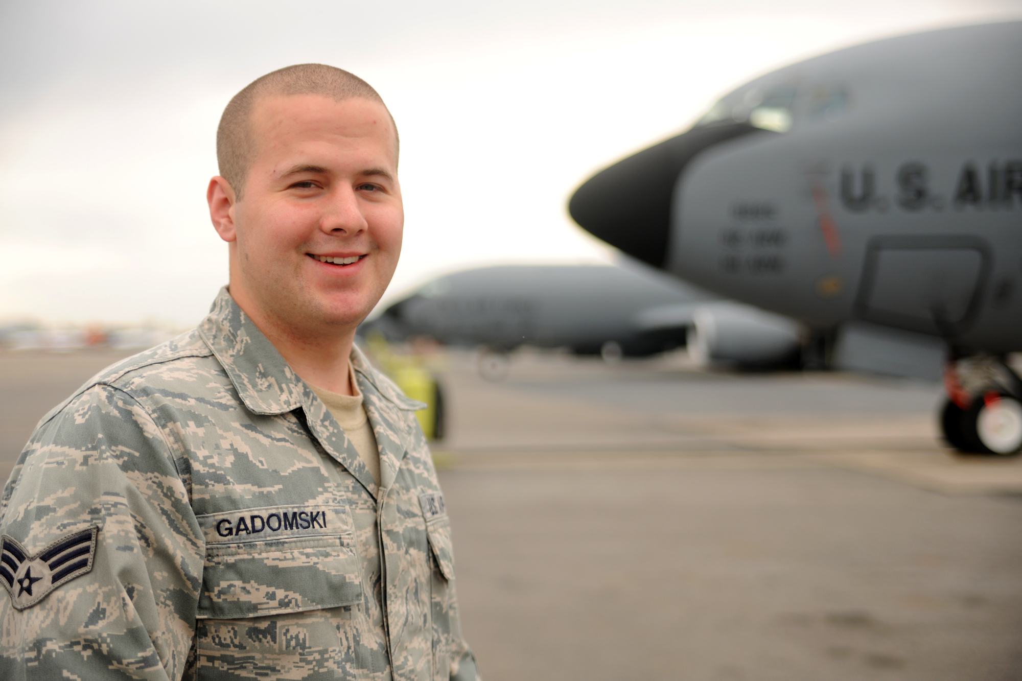 TRANSIT CENTER AT MANAS, Kyrgyzstan - Meet the Warrior of the Week. Senior Airman Michael Gadomski is a KC-135R Communications/Navigation Specialist with the 376th Expeditionary Aircraft Maintenance Squadron, deployed from the 92nd Aircraft Maintenance Squadron, Fairchild Air Force Base, Wash. He hails from Wilkes Barre, Pa. (U.S. Air Force photo/Staff Sgt. Nathan Bevier)