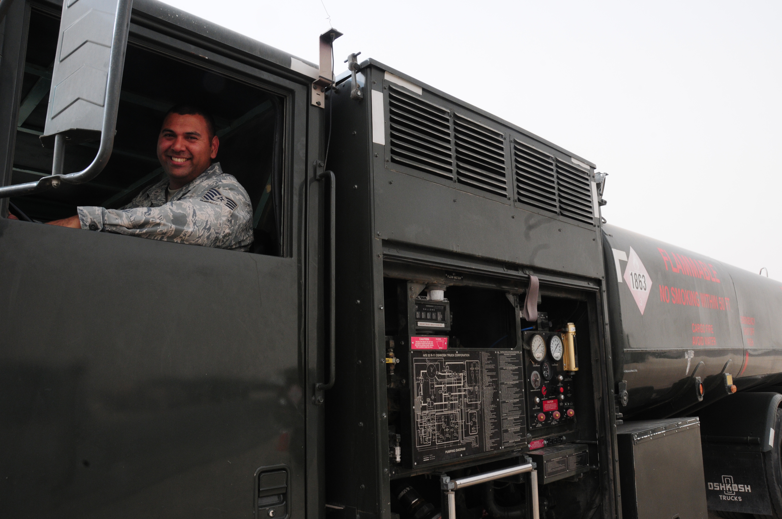U.S. Air Force Tech. Sgt. Miguel Saucedo, 386th Expeditionary Logistics Readiness Squadron fuels management flight operations supervisor, is a Los Angeles native deployed from Travis Air Force Base, Calif., to an undisclosed location in Southwest Asia. (U.S. Air Force photo by Staff Sgt. Lakisha A. Croley/Released)