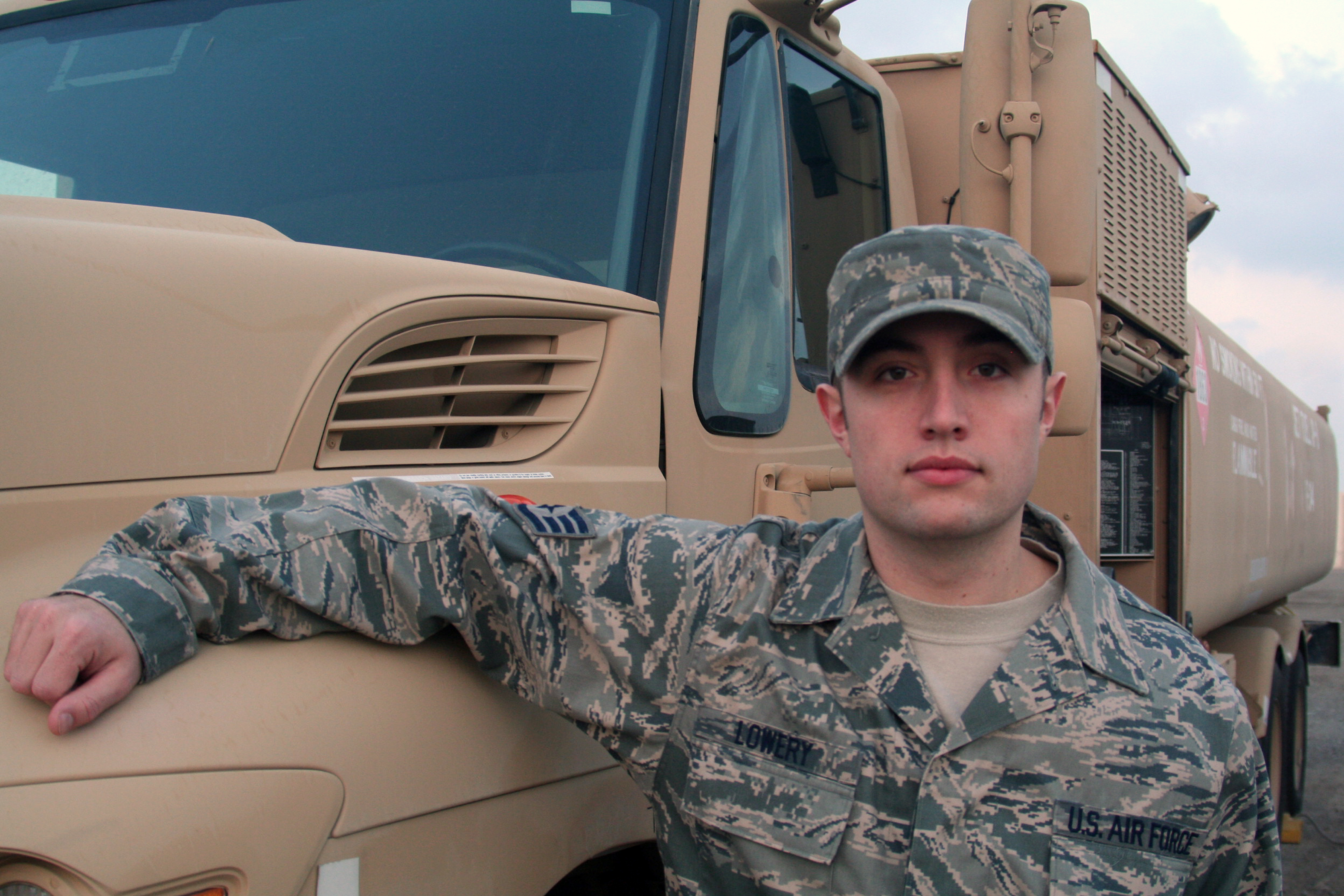 Staff Sgt. Eric Lowery, Fuels Service Center accountant and controller with the 380th Expeditionary Logistics Readiness Squadron deployed from Dover Air Force Base, Del., was named the 380th Air Expeditionary Wing "Warrior of the Week" for the week of Dec. 30, 2009, to Jan. 5, 2010. In his deployed job, Sergeant Lowery is responsible for the delivery of fuel to all deployed and transient aircraft, with an average nine-minute response time ensuring the timely delivery of fuel so aircraft meet departure times. He's also responsible for the second largest fuel's account in the U.S. Central Command area of responsibility and processes approximately $1.25 million in fuels transaction every day. Sergeant Lowery's hometown is Wilder, Vt. (U.S. Air Force Photo/Tech. Sgt. Scott T. Sturkol)