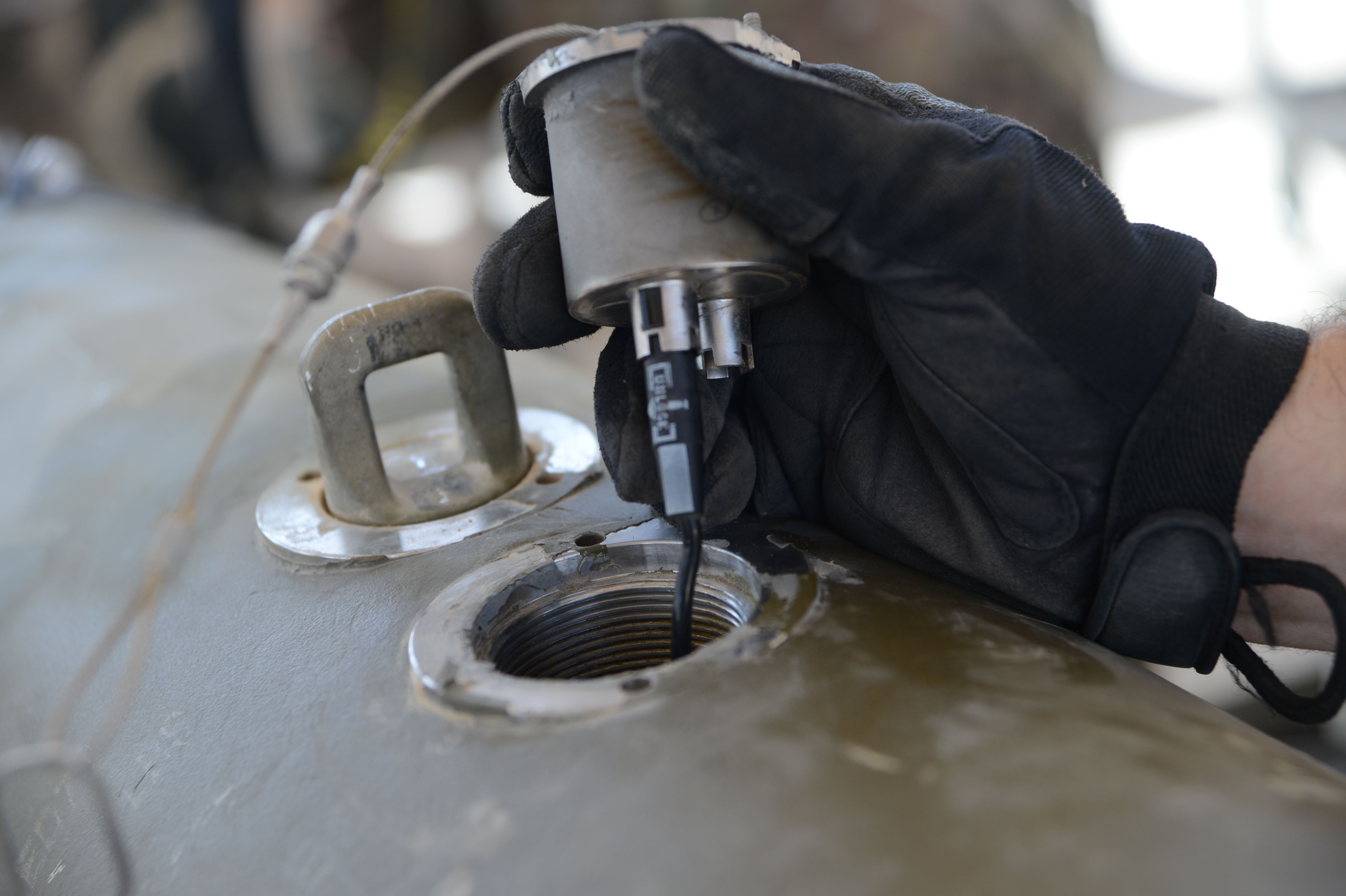 An Airman assigned to the 455th Expeditionary Maintenance Squadron prepares to attach an FMU-55 initiator onto a bomb conduit during the building of a GBU-38 bomb Aug. 14, 2014, at Bagram Airfield, Afghanistan. The GBU-38 is utilized by the F-16C Fighting Falcon. (U.S. Air Force photo/Master Sgt. Cohen A. Young)
