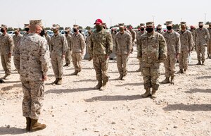 Lt. Gen. Greg Guillot, 9th Air Force (Air Forces Central) commander, and Chief Master Sgt. John Storms, 9th AF (AFCENT) command chief receives an update from joint forces personnel on the integrated air defense capabilities at Prince Sultan Air Base, Kingdom of Saudi Arabia, May 14, 2021. Guillot