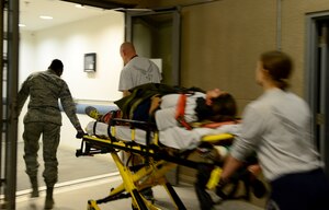U.S. Air Force Airmen watch an Oshkosh Striker fire engine capabilities display at Al Udeid Air Base, Qatar, Nov. 27, 2021. The Striker fire engines are designed with a “snozzle” that is capable of penetrating an aircraft’s fuselage and extinguishing fires in the cargo or cabin areas. (U.S. Air