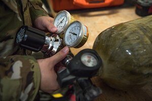 A vehicle burns during a firefighting training exercise August 10, 2021, at Al Udeid Air Base, Qatar. The 379th Expeditionary Civil Engineer Squadron Fire Emergency Services worked with the 379th ECES Explosive Ordnance Disposal team to conduct realistic fire training scenarios. (U.S. Air Force