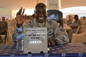 Airmen deployed to Al Udeid Air Base, Qatar, gathered for a military working dog demonstration hosted by 379th Expeditionary Security Forces Squadron Airmen April 6, 2014.The 379th ESFS uses demonstrations as an opportunity to educate the base populous on what the MWD mission and how the mission