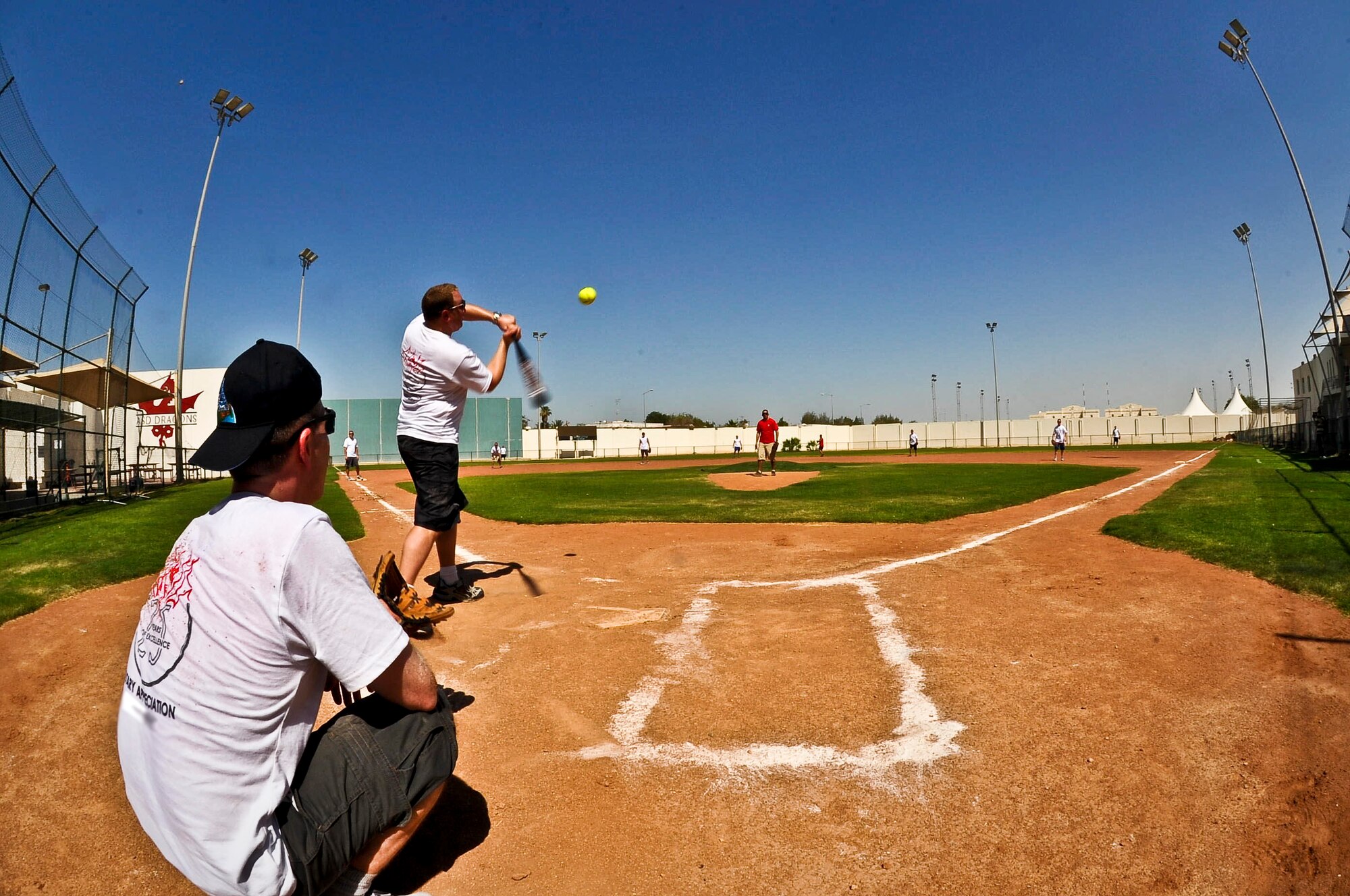 Service members from the 379th Air Expeditionary Wing watch a photo slideshow at a local school’s annual military appreciation day, May 25, 2013, in Southwest Asia. The slideshow depicted how Grand Slam Airmen, Soldiers, Sailors and Marines volunteered their time with the school over the past year. (U.S. Air Force photo/Tech. Sgt. Joselito Aribuabo)
