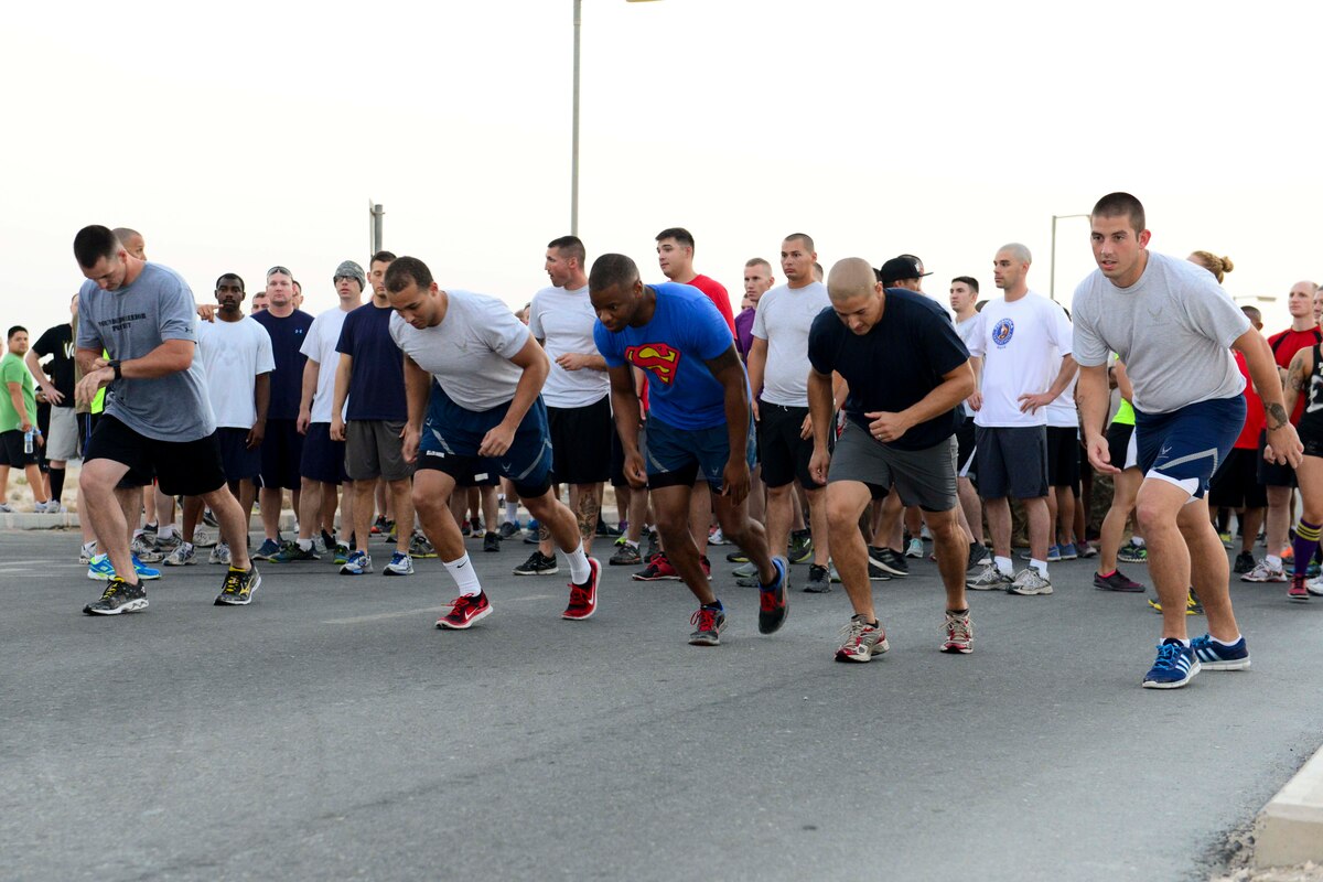 A Service member completes an obstacle as part of a Combined Federal Campaign event at Al Udeid Air Base, Qatar, Sept. 8, 2014. The campaign, which lasts now through November 7, is the only approved charity drive for federal employees. (U.S. Air Force photo by Staff Sgt. Ciara Wymbs)
