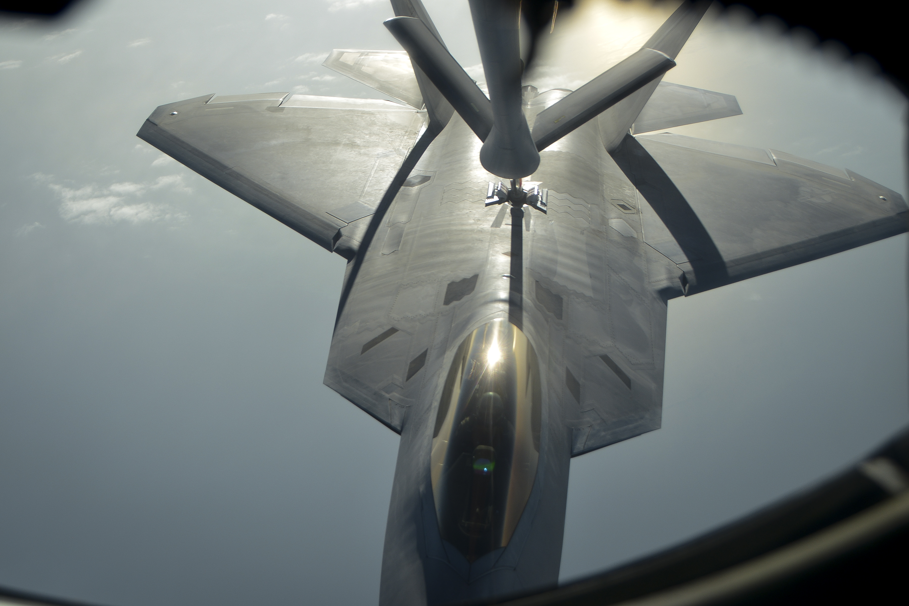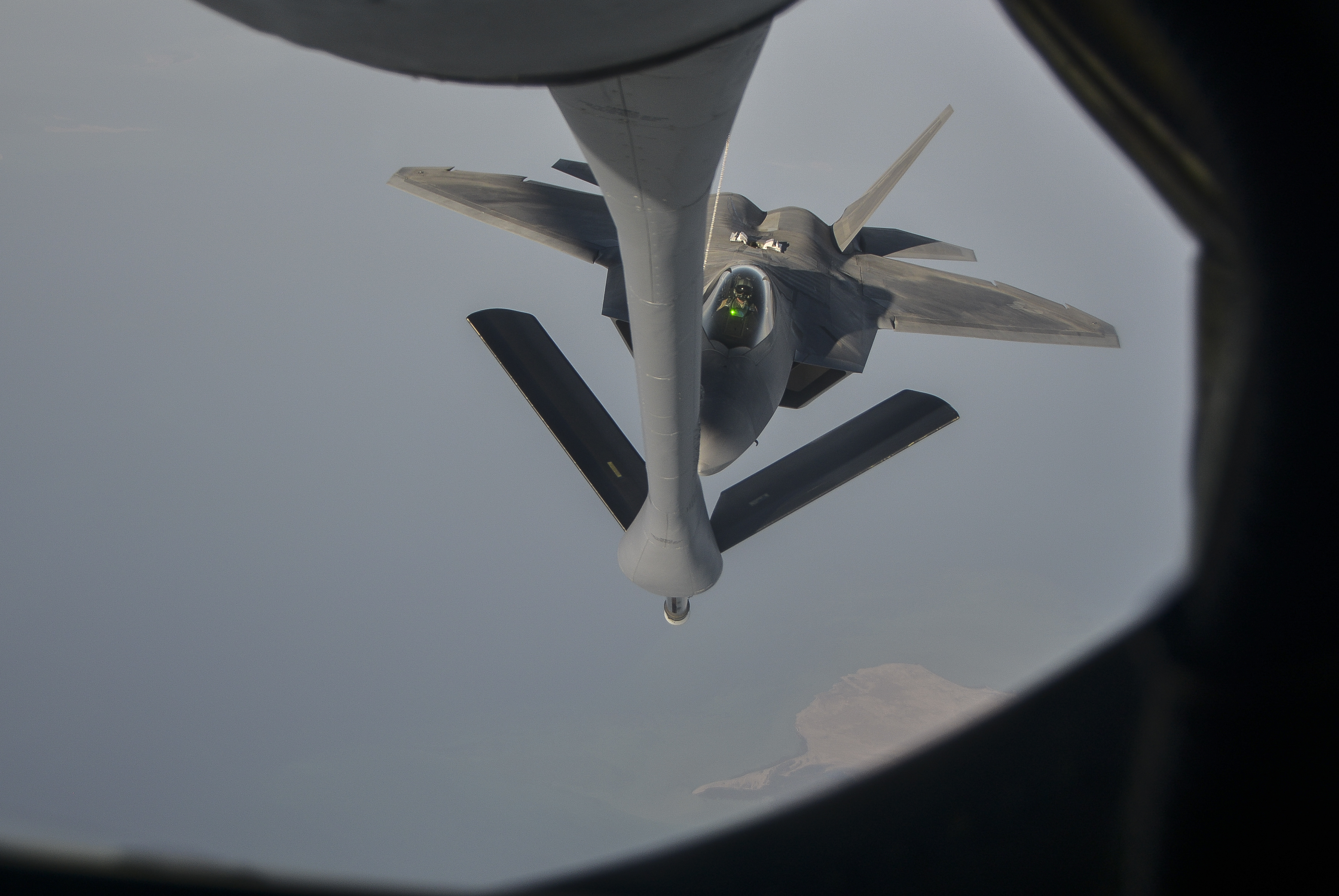 Master Sgt. Jorge Brewer, a 340th Expeditionary Air Refueling Squadron boom operator, looks out the back of a KC-135 Stratotanker before an aerial refueling mission at an undisclosed location in Southwest Asia, Feb. 26, 2014. Airmen from the 340th EARS at Al Udeid Air Base, Qatar, make up the U.S. Air Forces Central Command’s area of responsibility main refueling squadron which supports the aircraft of Operation Enduring Freedom. Aerial refueling extends the capabilities of any aircraft by expanding the range, limited only by crew fatigue and fuel consumption of the aircraft. Brewer hails from Raleigh, N.C. and is deployed from Seymour Johnson Air Force Base, N.C. (U.S. Air Force photo/Senior Airman Jared Trimarchi)