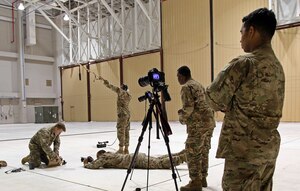 Engineer assistants with the 379th Expeditionary Civil Engineer Squadron GEOBASE section pose for a photo at Al Udeid Air Base, Qatar, March 15, 2017. Airmen with the GEOBASE section survey, map, draft and maintain common installation picture maps and have the ability to produce unit specific maps