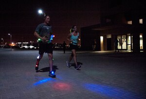 U.S. Air Force Brig. Gen. Daniel Tulley, 379th Air Expeditionary Wing commander, and U.S. Air Force Col. Anne Marie McCain, outgoing 379th Expeditionary Medical Group, stand at attention during a change of command ceremony, July 9, 2020, Al Udeid Air Base, Qatar. As a theatre force provider, the