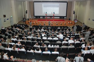 March 15, 2010 Base theater undergoes major renovations Servicemembers lined up outside the base theater here in anticipation of its grand opening celebration March 12 after undergoing major renovations over the last six months. The renovations, which resulted in the theater's ability to show first-run 35 mm movies, included installing a new projector