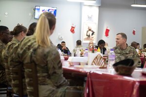Dec. 17, 2021 Ninth Air Force (AFCENT) commander visits 386th AEW Airman U.S. Air Force Lt. Gen. Greg Guillot, Ninth Air Force (U.S. Air Forces Central) commander, and Chief Master Sgt. John Storms,9th AF (USAFCENT) command chief, visited the 386th Air Expeditionary Wing to meet with leadership and recognize Airmen.